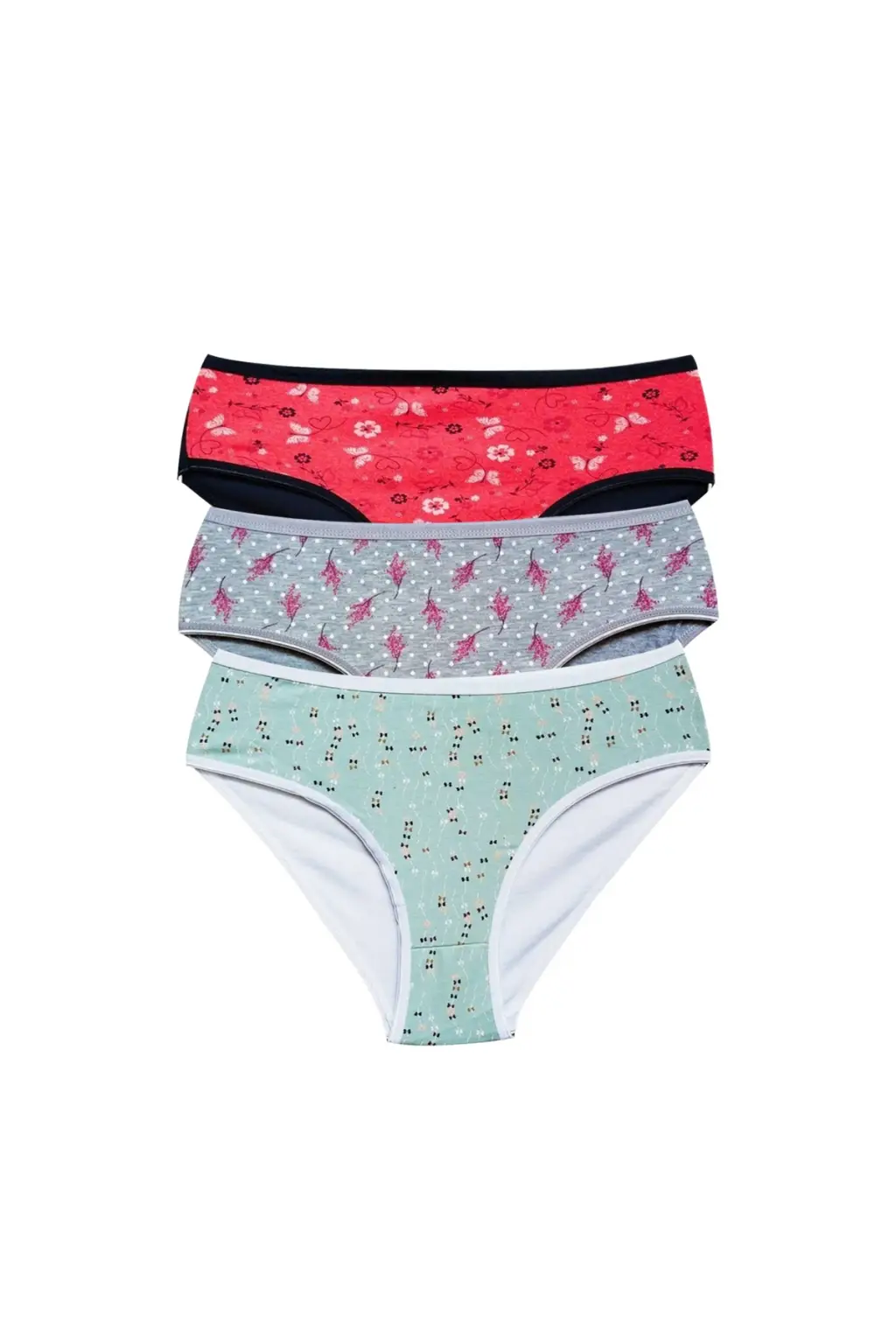 Pamuklu Geniş Kenarlı Likralı Desenli Kadın Külot 3'lü Paket Set1