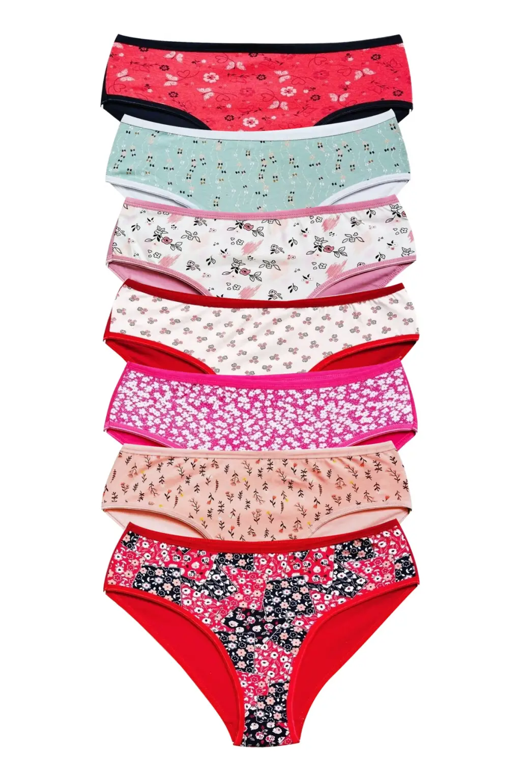 Pamuklu Geniş Kenarlı Likralı Desenli Kadın Külot 7'li Paket