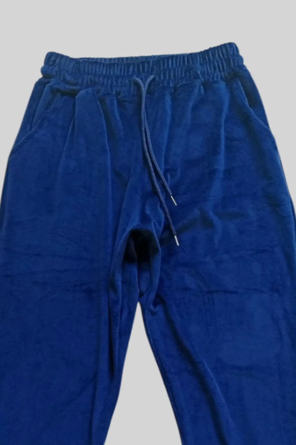 Parlak Kadife Cepli Pantolon Eşofman Pijama Altı Unisex Lastikli Paça Lacivert