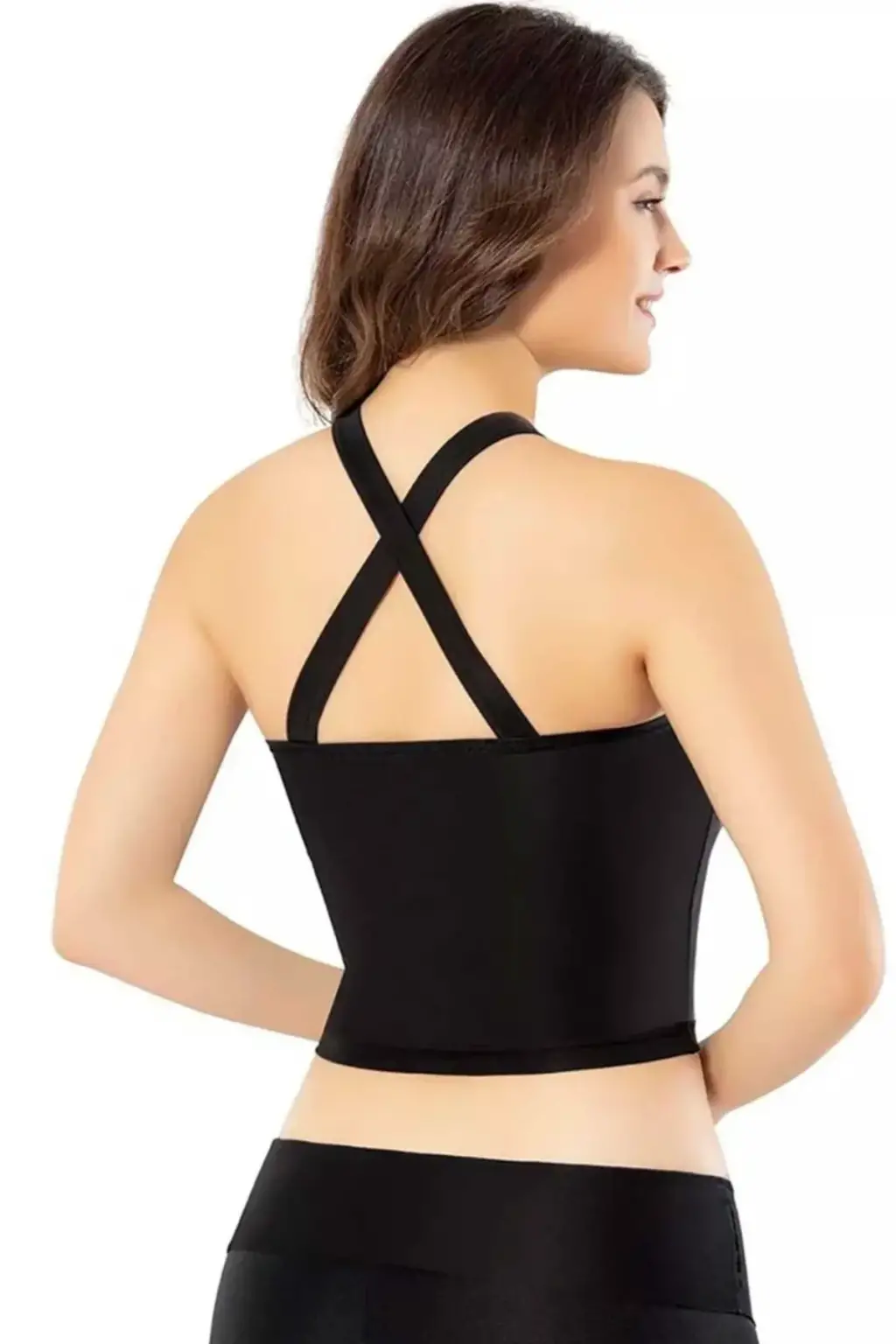 Pedli Dalgıç Modelli Krop Geniş Askılı Kadın Büstiyer Siyah