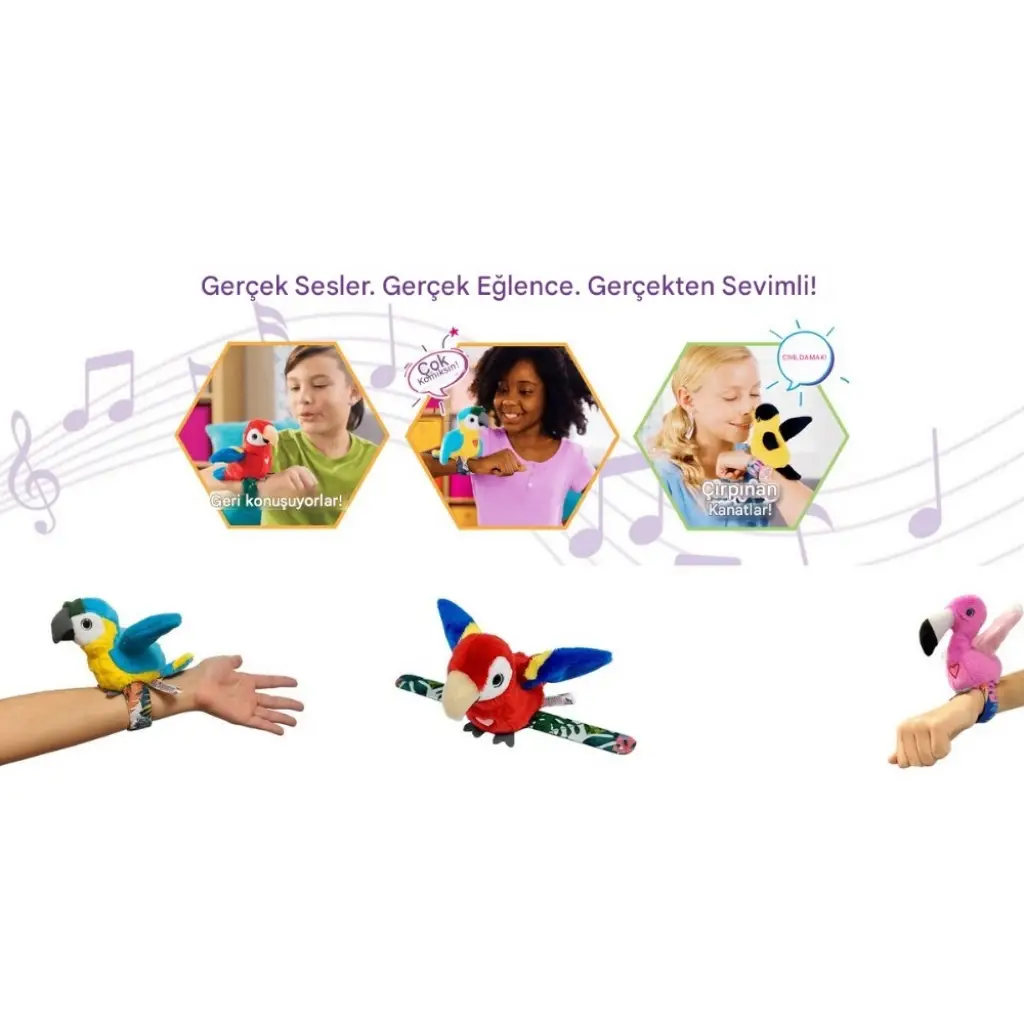 Peluş Ses Tekrarlı Hayvan Bileklik Aksesuar - Pembe Papağan