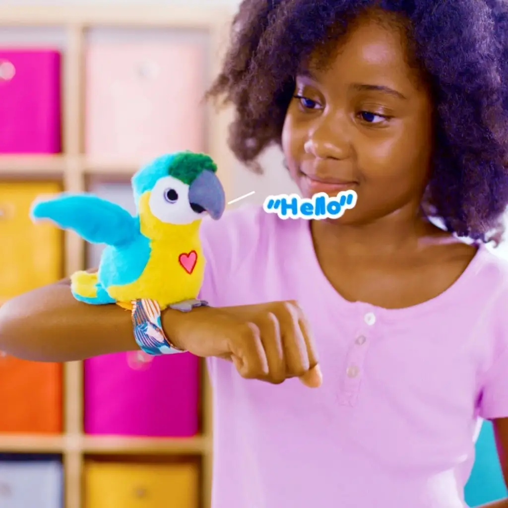 Peluş Ses Tekrarlı Hayvan Bileklik Aksesuar - Sarı Papağan
