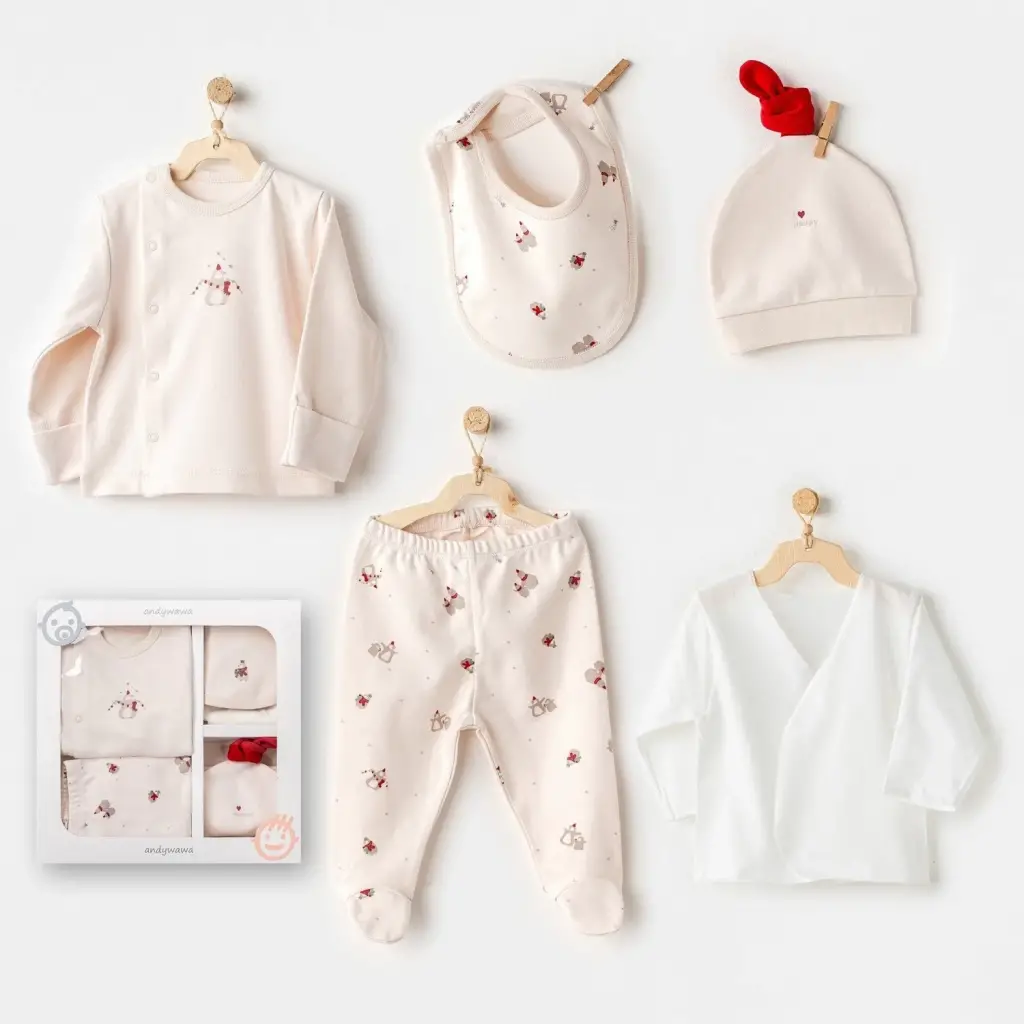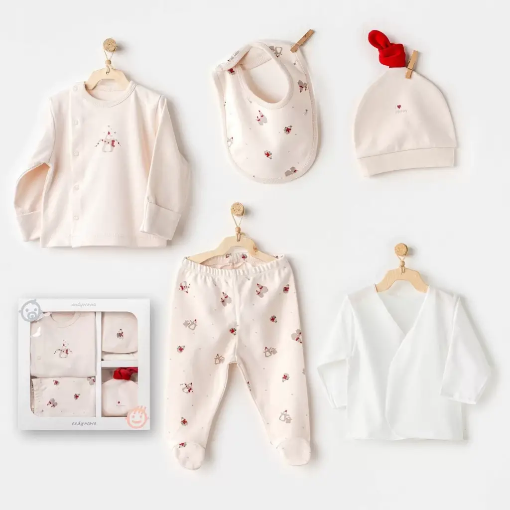 Omarı Modern ve Şık Ekru 5 Parça Penguin Bebek Seti