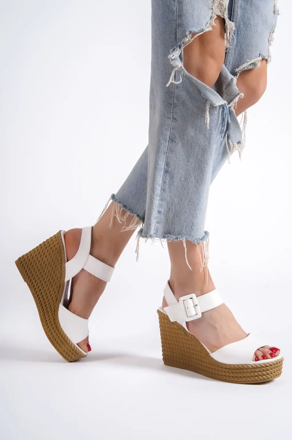 Trend Tokalı Rahat Bayan Sandalet - Beyaz