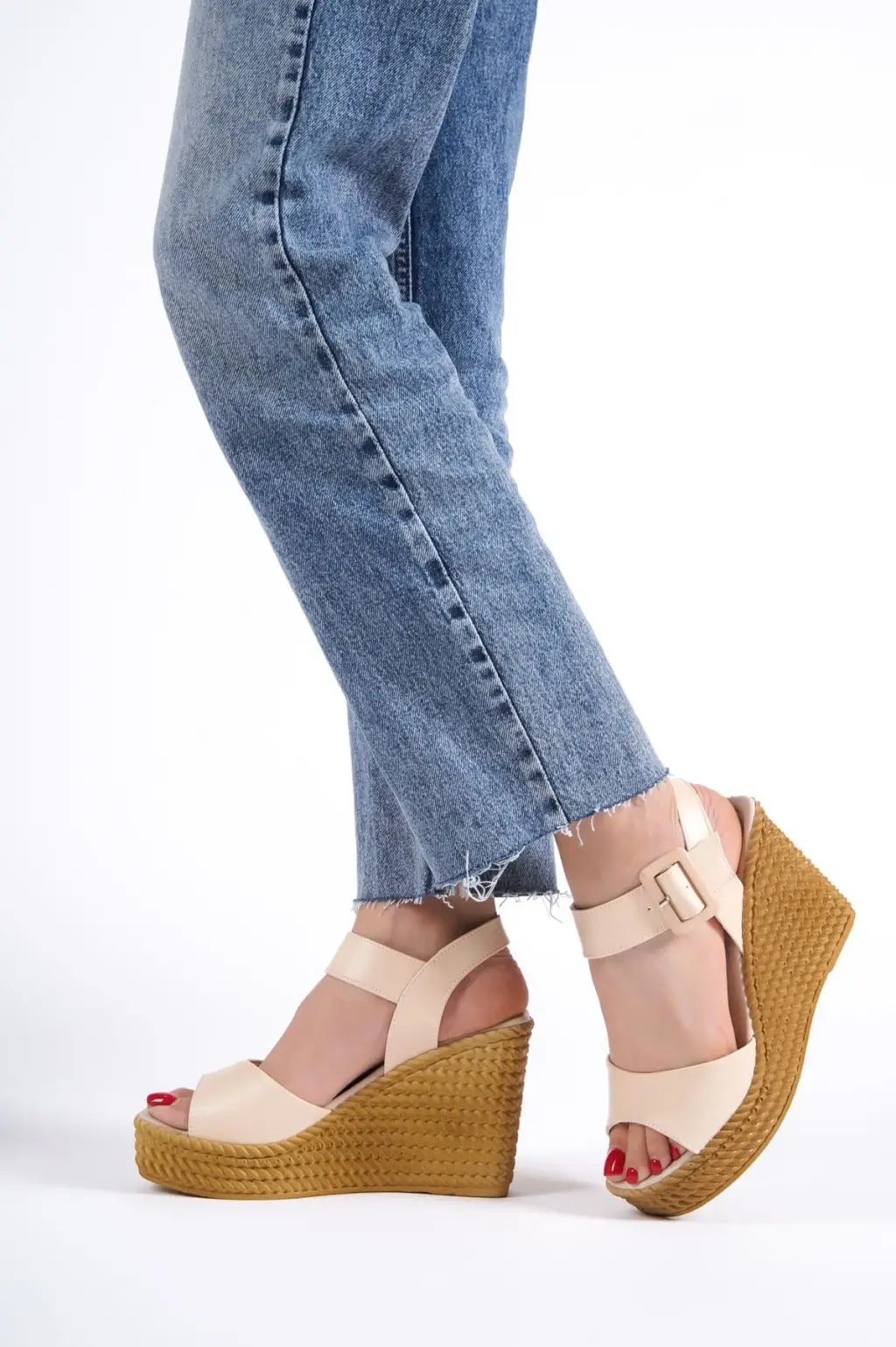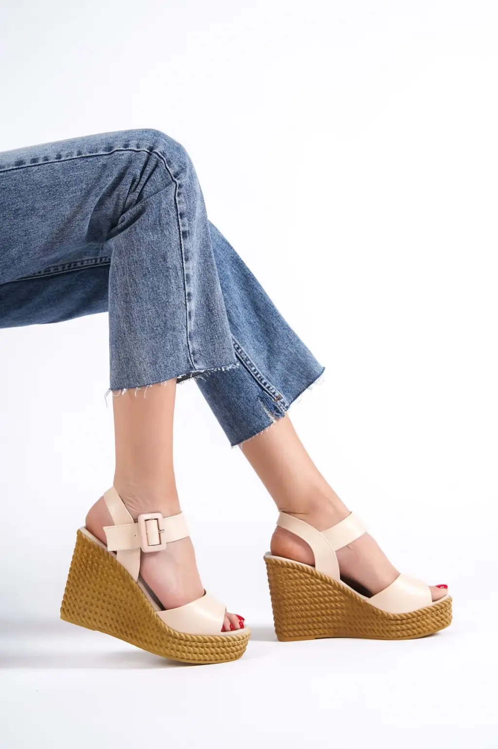 Rahat Lastikli Dolgu Topuklu Bayan Sandalet