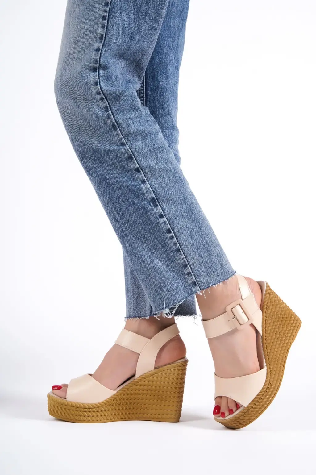 Omarı Rahat Tabanlı Perla Sandalet - Örgü Detaylı Bayan Ayakkabı