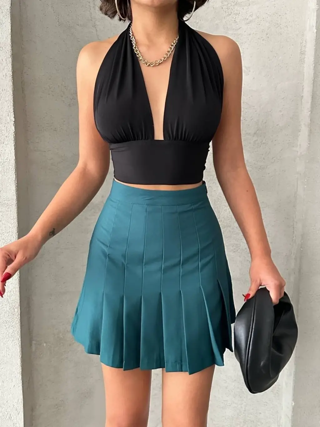 Çok şık ve trend bir görünüm elde etmenizi sağlayacak olan Yeşil Pileli Düğmeli Etek, gardırobunuzun vazgeçilmez parçalarından biri olmaya aday! Hem şık hem de rahat kesimi ile günlük hayatta veya özel davetlerde tercih edebileceğiniz bu etek, tarzınızı yansıtmanızı sağlayacak.