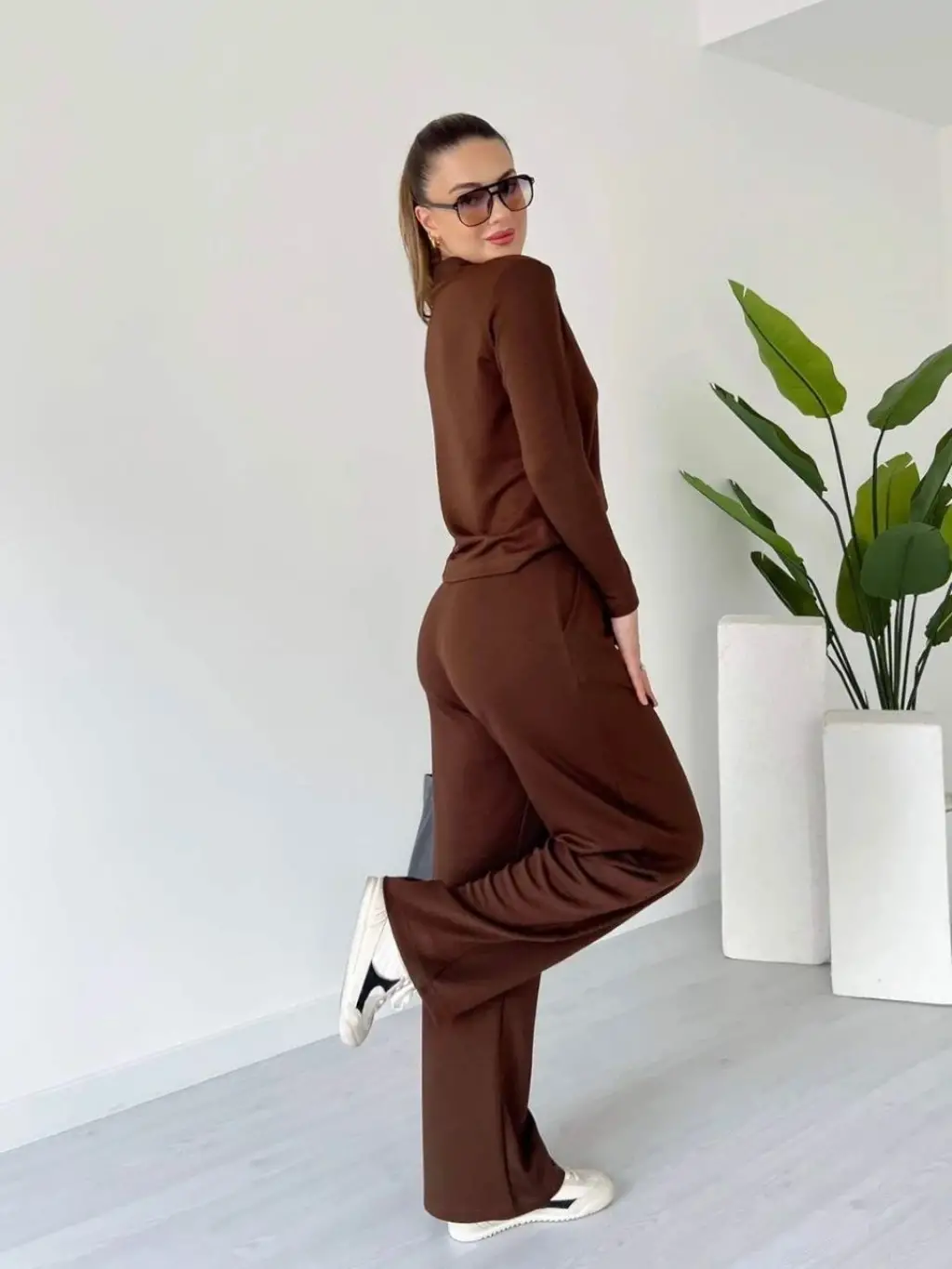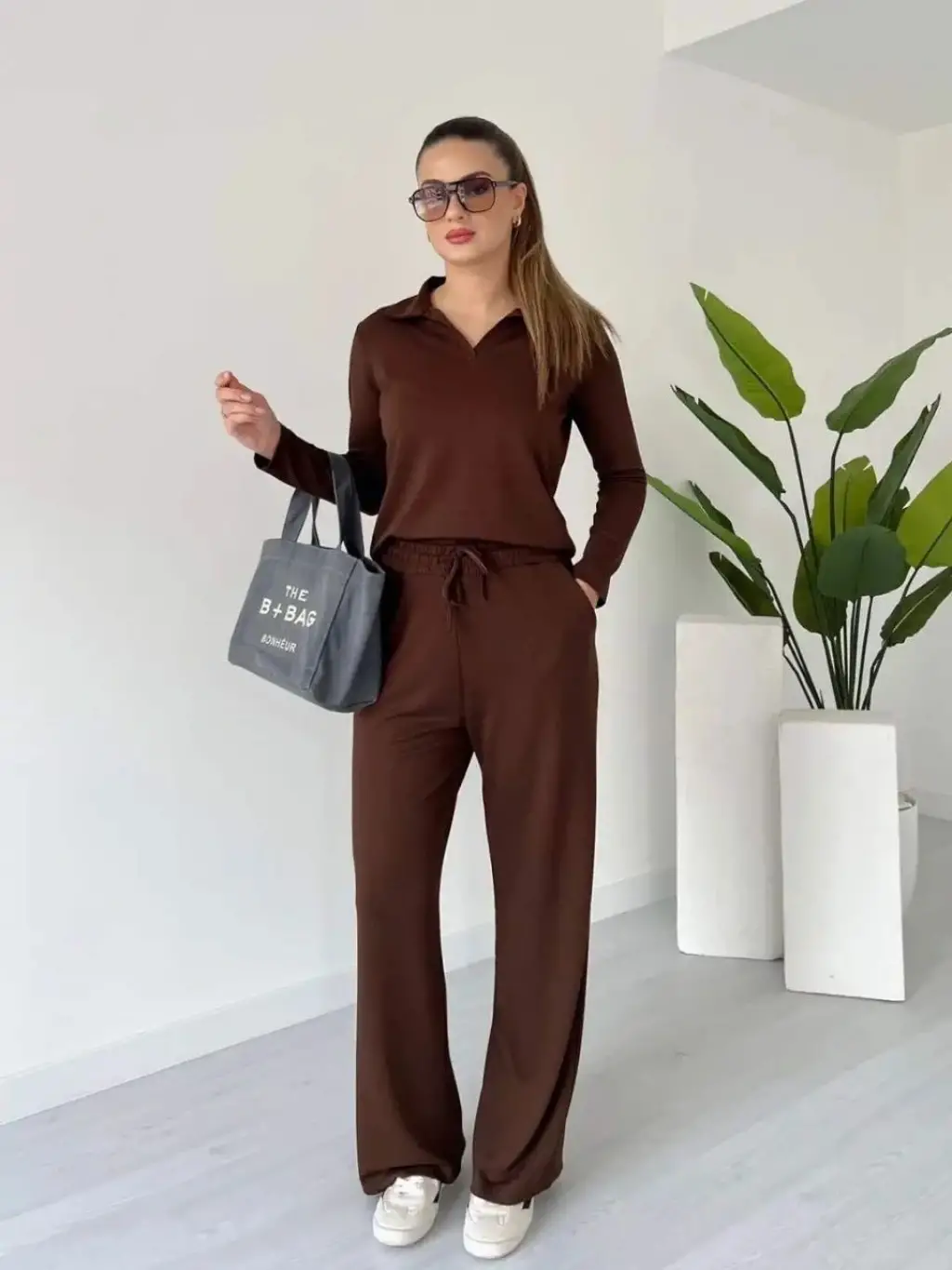 Şıklık ve konforun bir araya geldiği Kadın Polo Yaka Alt Üst Kollu Modal Takım Kahve PT, günlük giyimde ve özel günlerde şıklığınızı tamamlar.