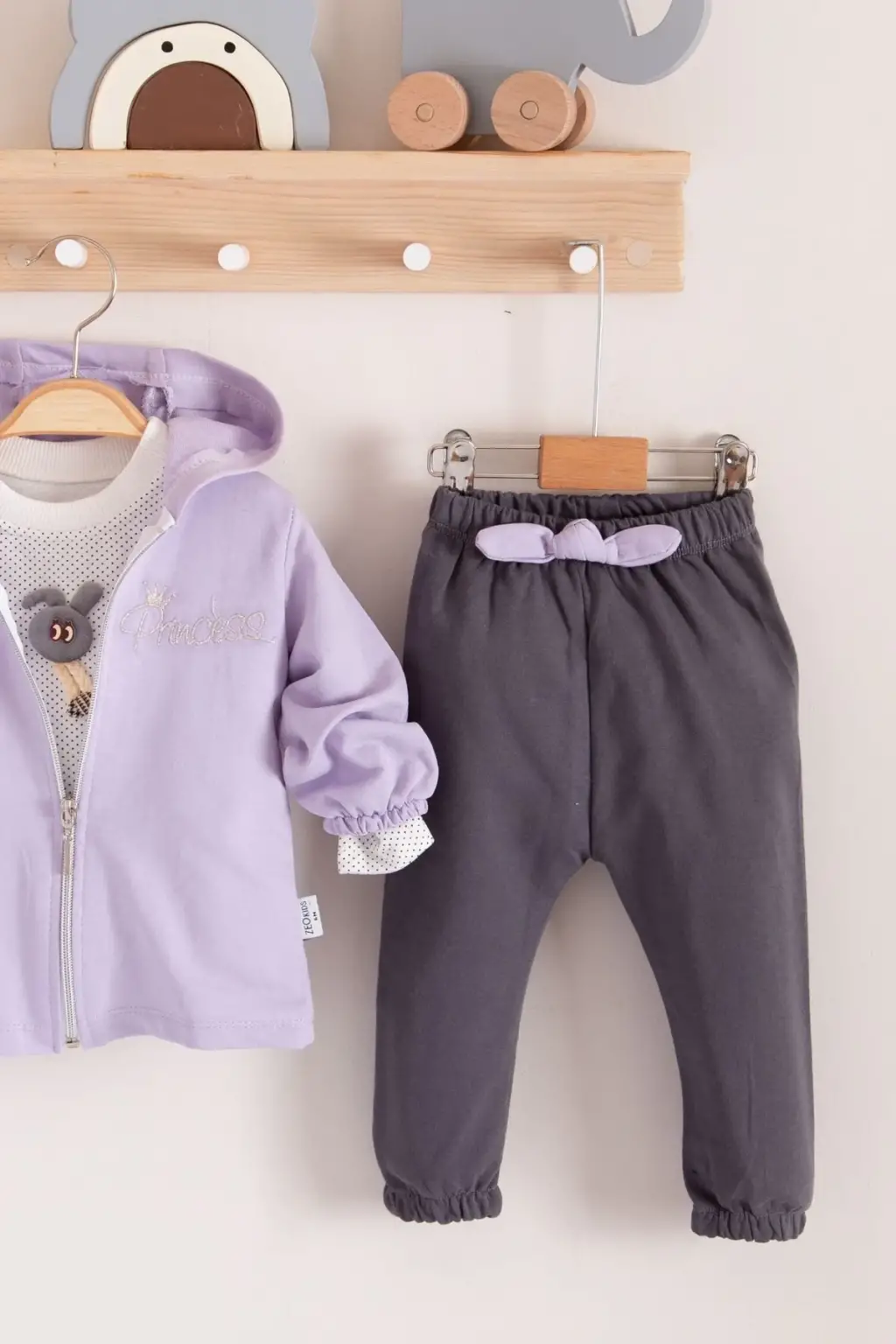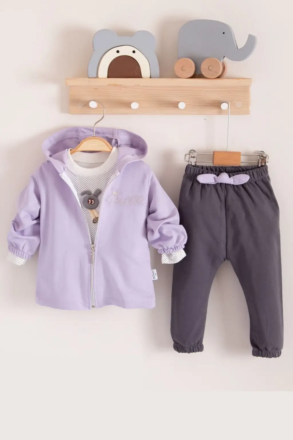 Prences Nakışlı Kapişonlu 3'lü % 100 Pamuk Kız Bebek Takımı