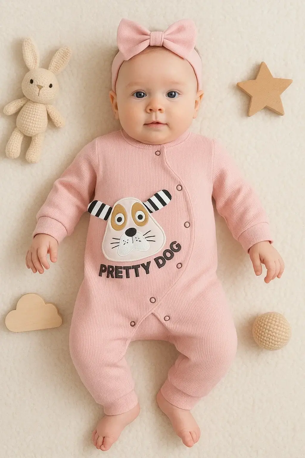 Pretty Dog Nakışlı Bandanalı % 100 Pamuk Kız Bebek Tulumu