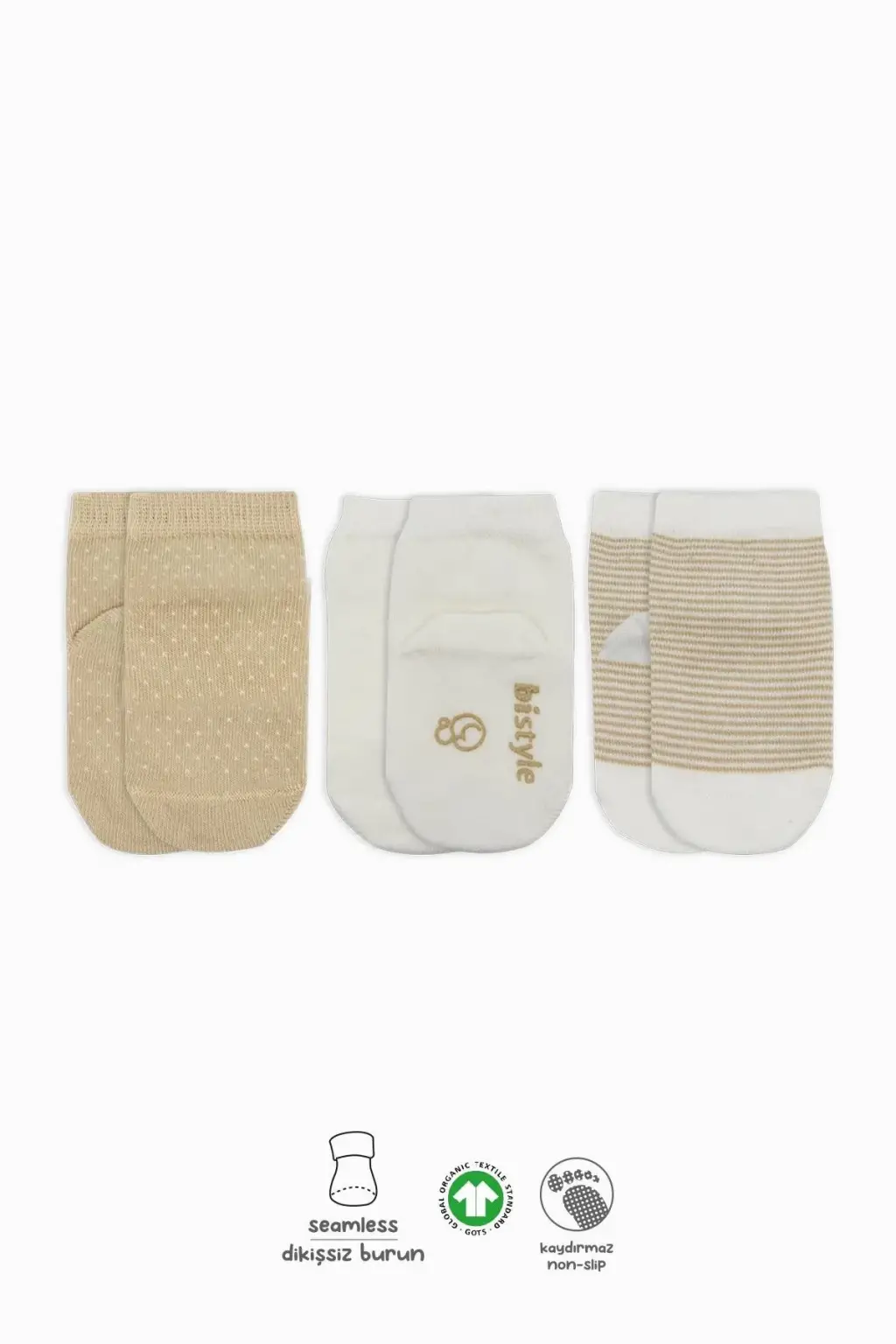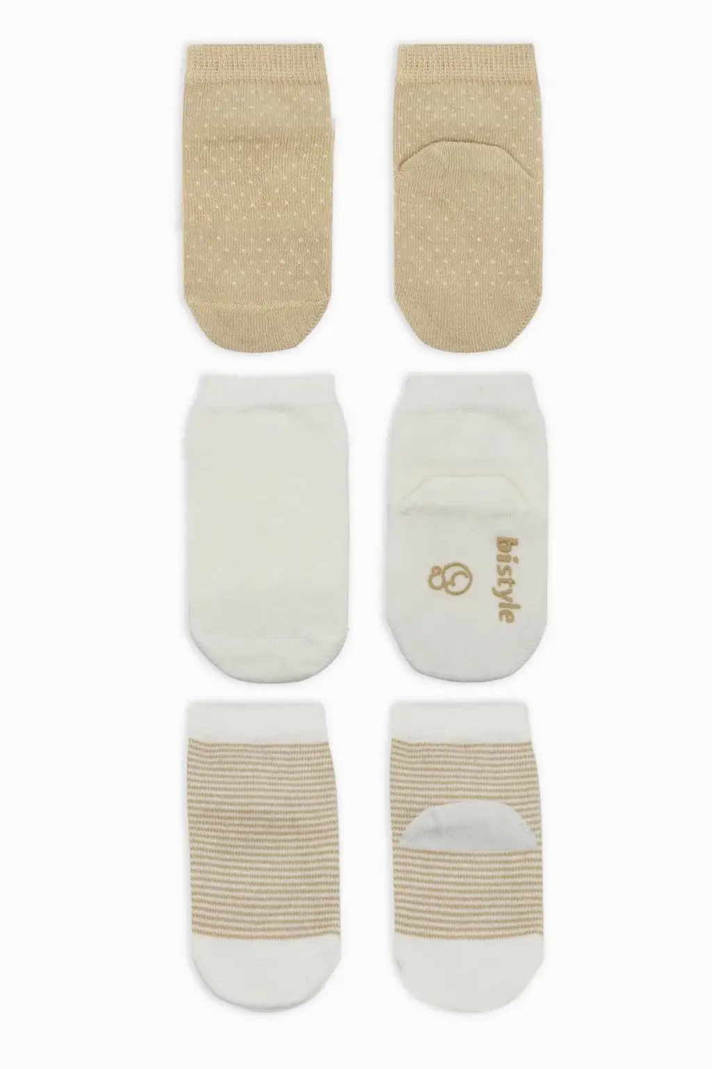 Puanlı Kaymaz Penye Soket Çorap 3'lü Bej
