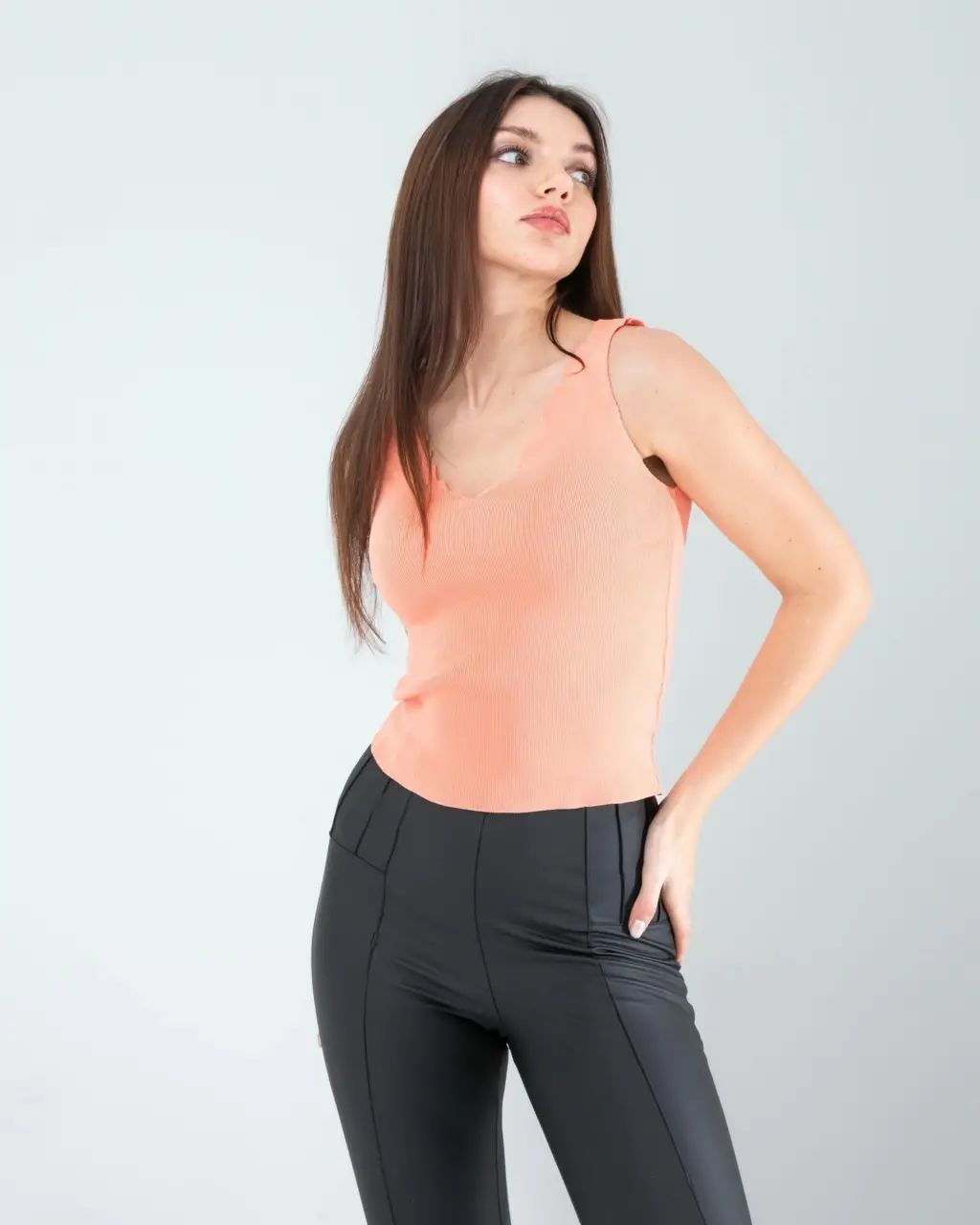 Gardırobunuzun en göz alıcı parçalarından biri olacak. Yumuşak triko kumaşı ve modern merdiven yaka tasarımı ile hem rahat hem de zarif bir görünüm sunar. Kalın askıları sayesinde gün boyu konfor sağlar. Bu bluz, günlük kullanım için idealdir ve çeşitli kombinlerle kolayca uyum sağlar.