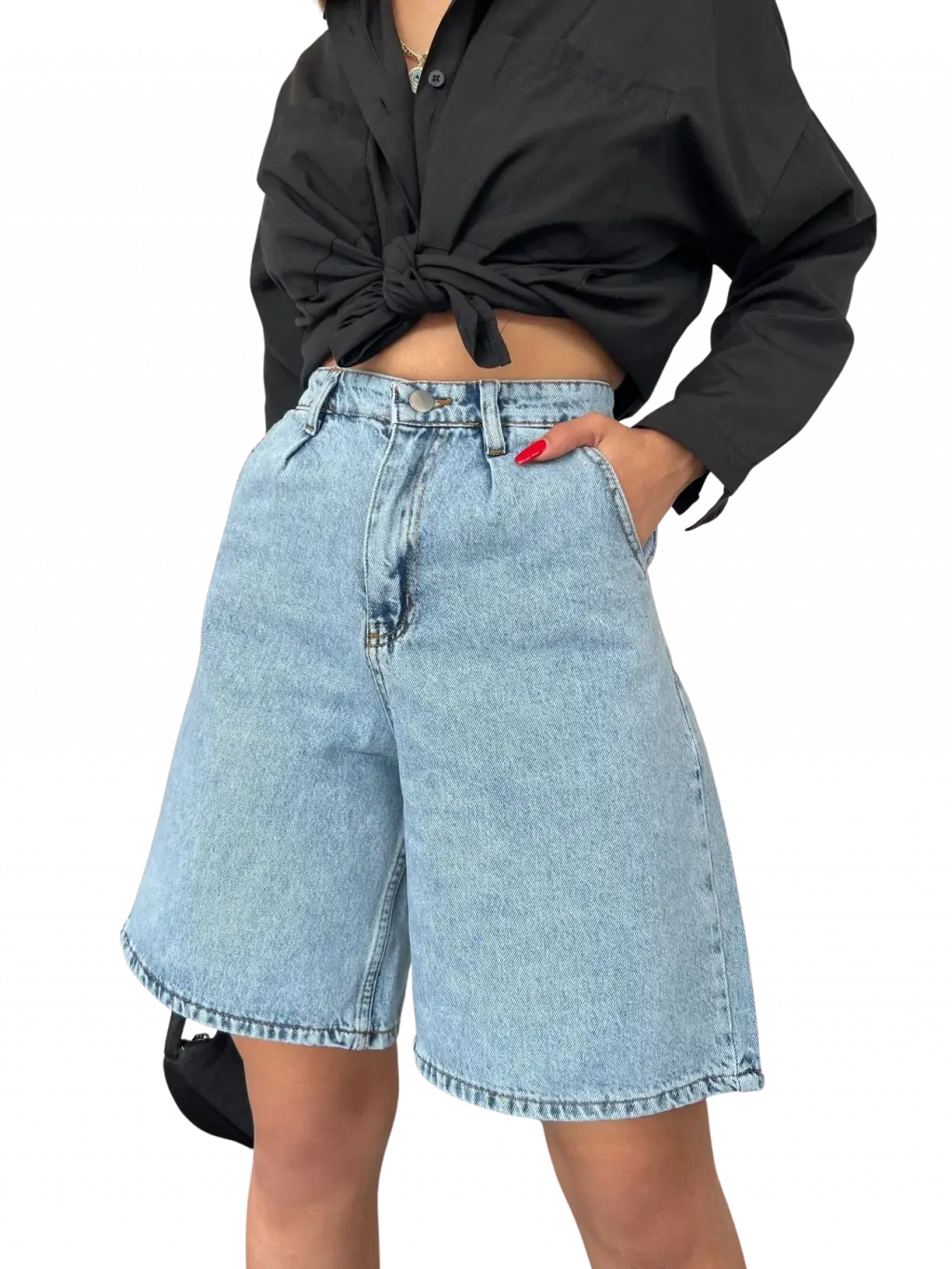Denim Şort Cepli, birçok farklı üst ile kombinlenebilir.