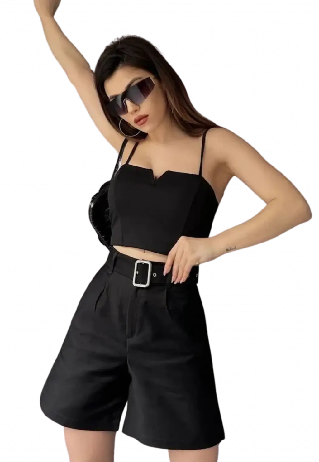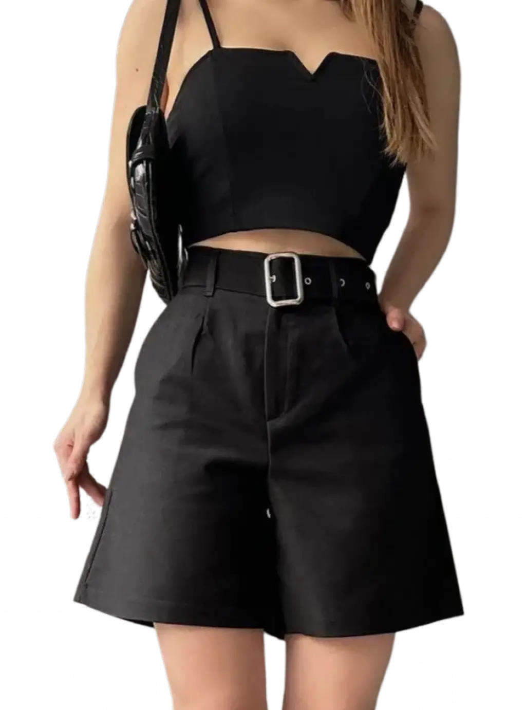 - Kemer Detayı: Belinize tam oturan kemer detayı, şortun şıklığını artırırken aynı zamanda vücut hatlarını daha belirgin hale getirir.