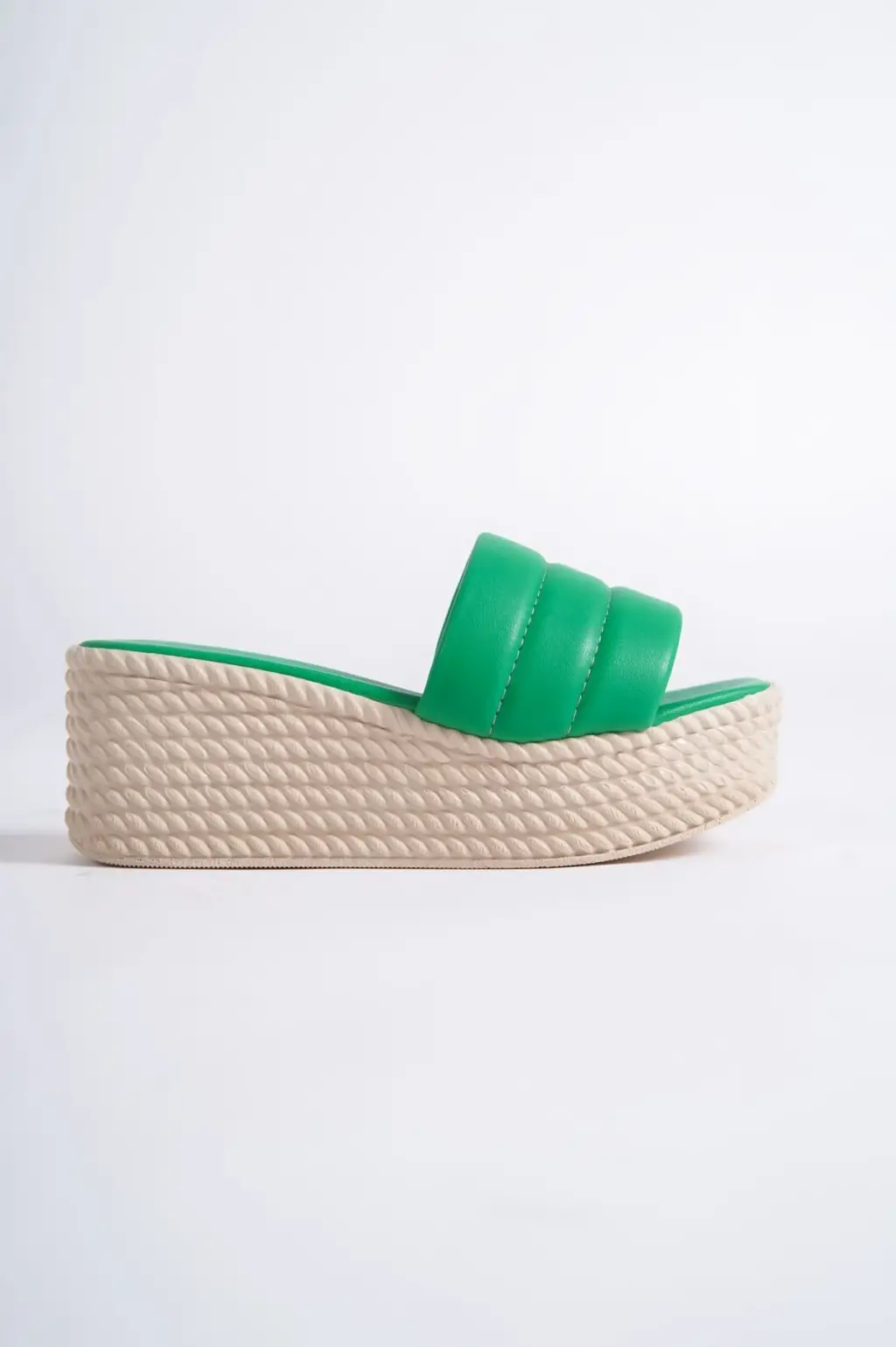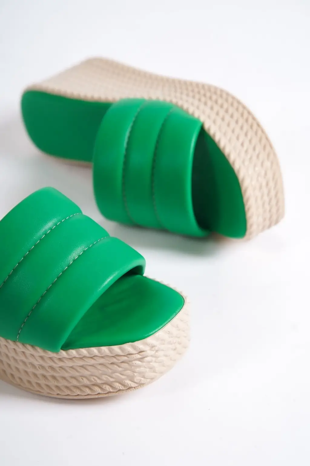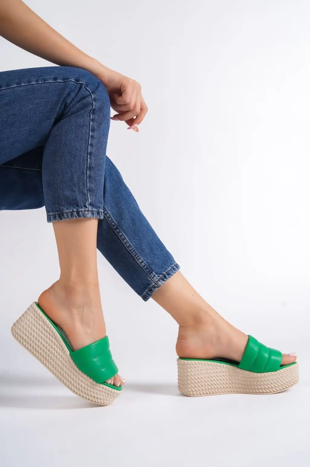 REINA Dolgu Topuklu Rahat tabanlı ayakkabı Tabaan Örgü detaylı Görünümlü Bayan Terlik CKısa Topuk - Yeşil
