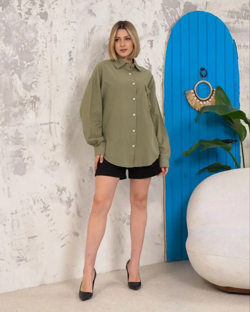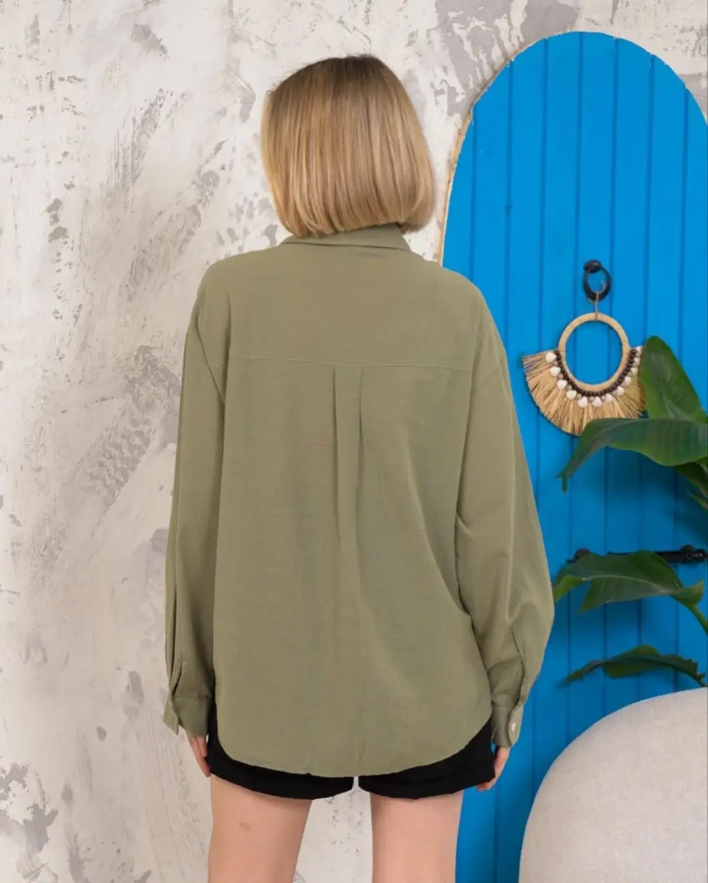 Bu haki renkli relax fit keten gömlek, şıklığı ve rahatlığı bir arada sunar. Hem günlük kullanıma hem de özel günlerde tercih edebileceğiniz şık bir parçadır.