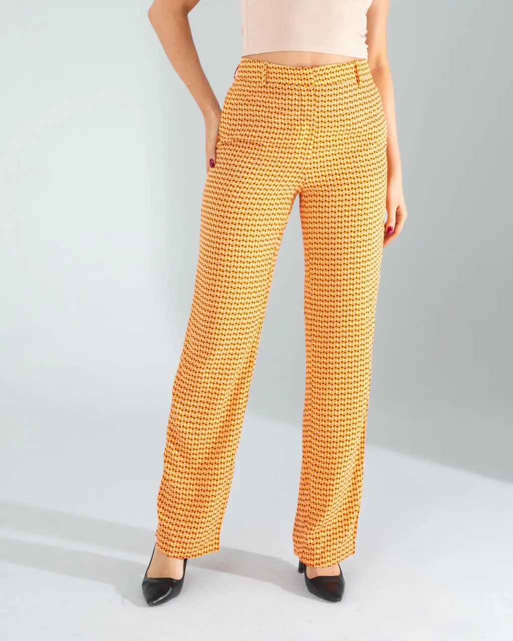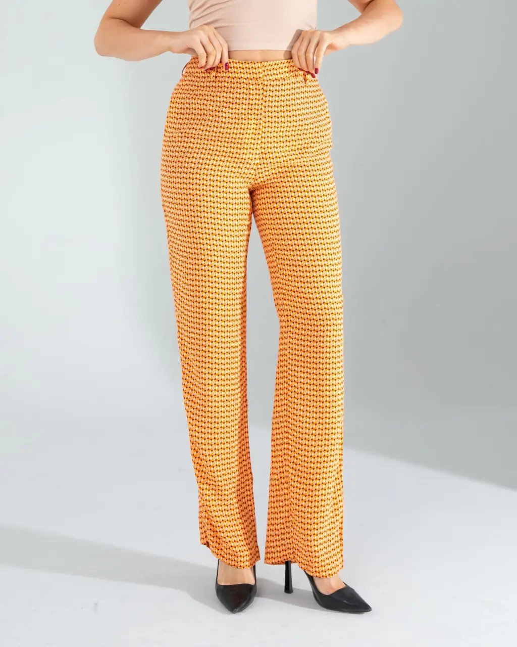 Şıklığı ve rahatlığı bir arada sunan eşsiz bir parçadır. Şifon kumaşın hafif ve nefes alabilir yapısı sayesinde yaz aylarında serin kalmanızı sağlar. Cepli tasarımı ile hem pratik hem de şık bir görünüm elde edersiniz. Turuncu renk ve retro desen detayları, bu pantolonu gardırobunuzun vazgeçilmez bir parçası haline getirir. Günlük kombinlerinizde rahatlıkla kullanabileceğiniz bu pantolon, aynı zamanda özel günlerde de şıklığınızı tamamlar.