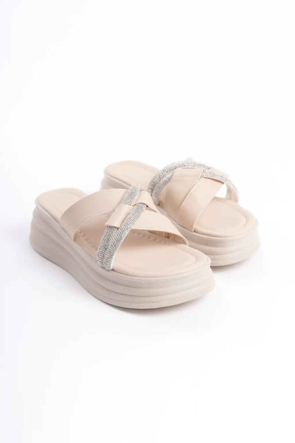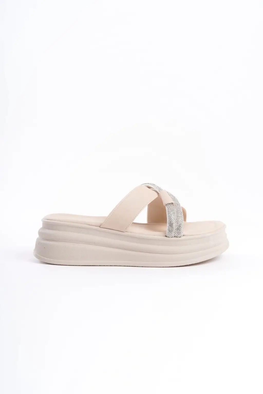 Estetik Çapraz Şeritli Rahat Tabanlı Bayan Terlik