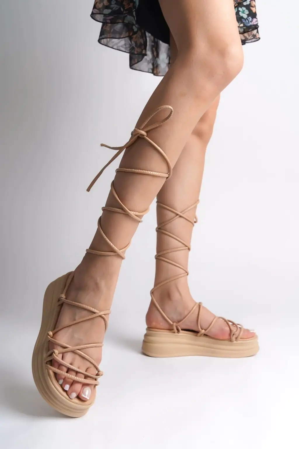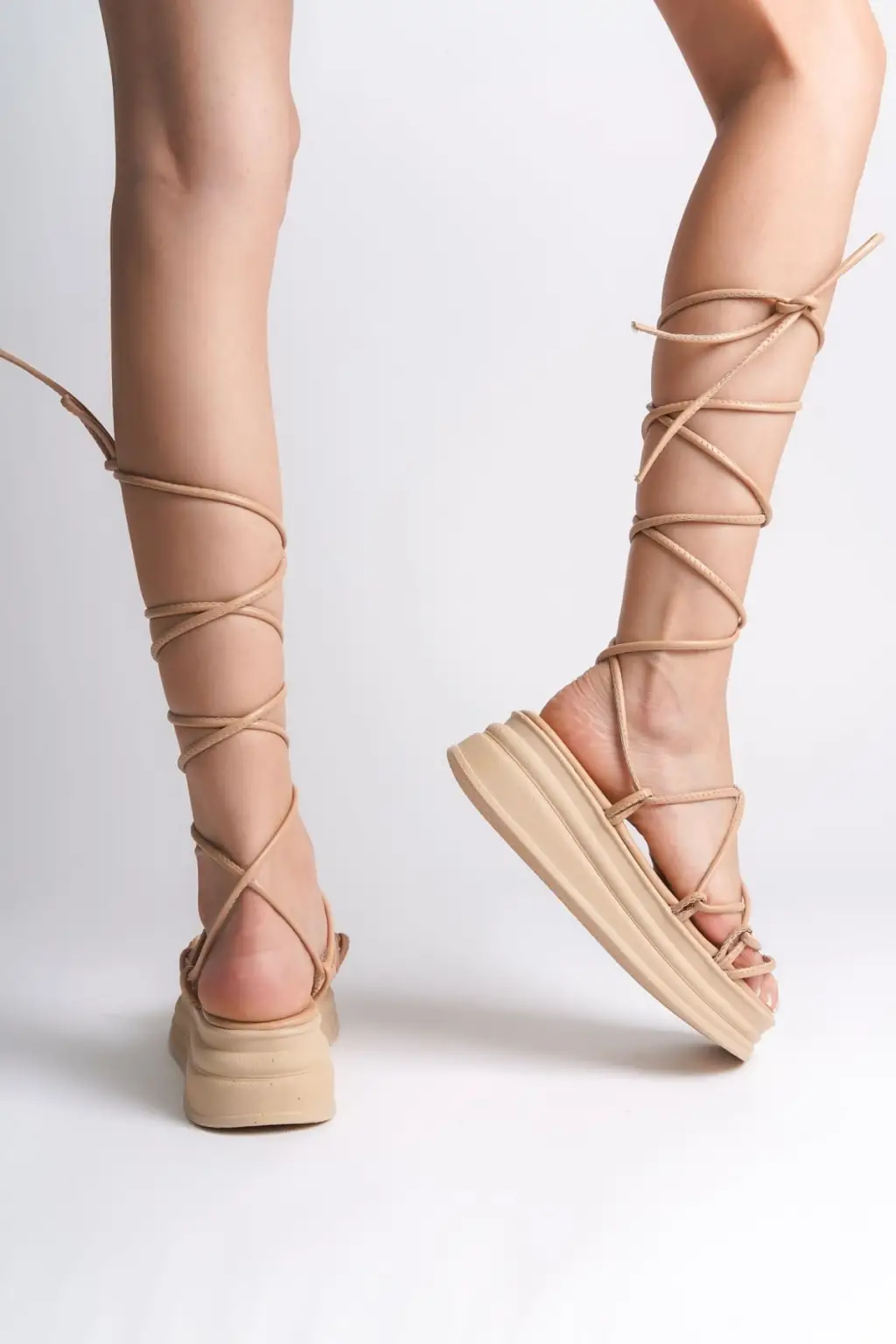 SAMANTHA Bilekten Bağlamalı Rahat tabanlı ayakkabı Tabaan Bayan Terlik CTT - Ten
