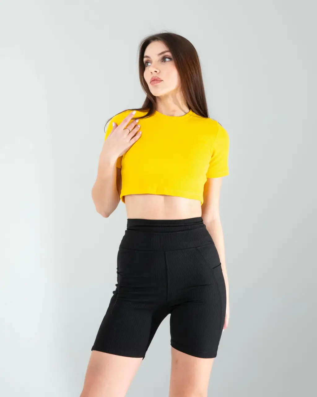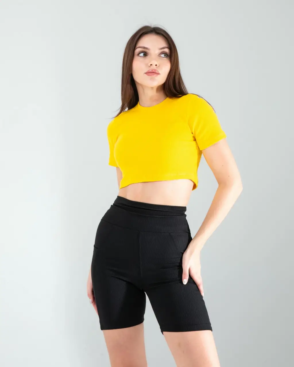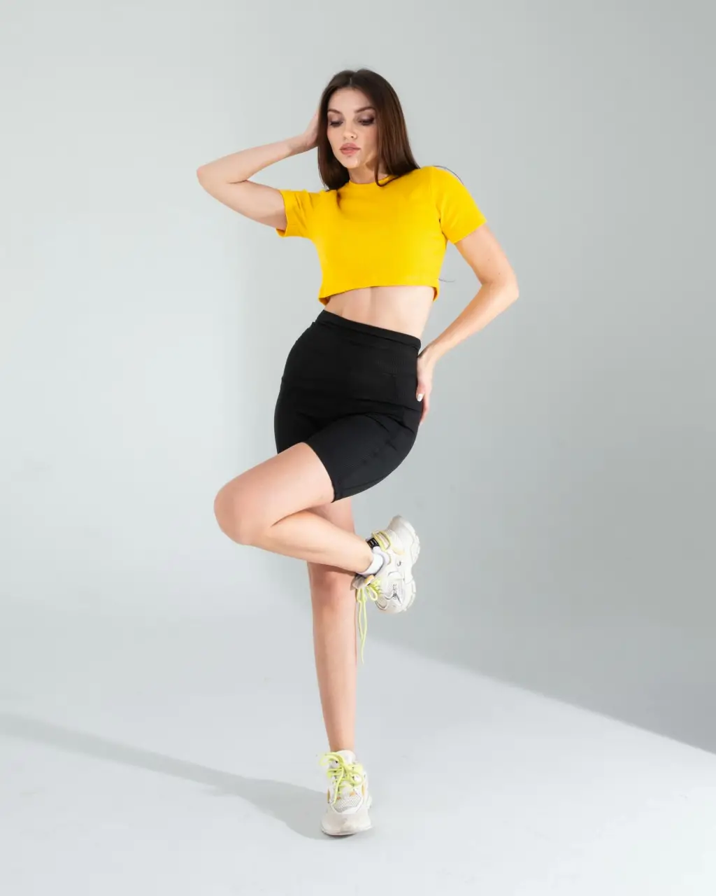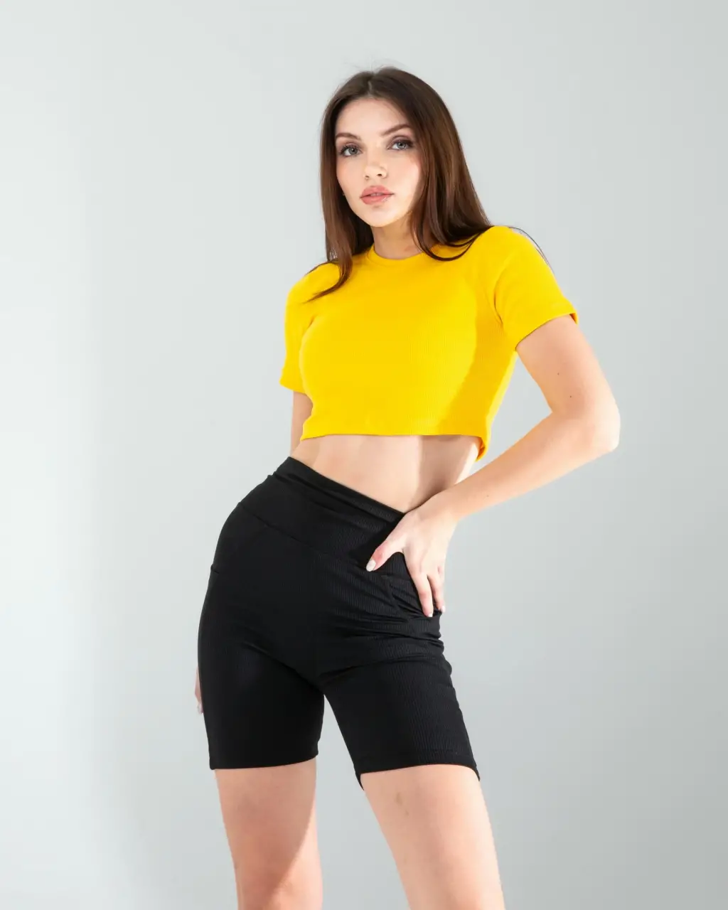 Gardırobunuzun vazgeçilmez parçası olacak! Yumuşak ve esnek kumaşı sayesinde gün boyu rahatlık sunar. Fitilli dokusu ve mini boyu ile şıklığı ve rahatlığı bir arada sunar. Kaşkorse kumaşı, vücuda mükemmel uyum sağlar ve hareket özgürlüğü sunar. Sarı rengi ile enerjik ve canlı bir görünüm elde edebilirsiniz. Bu bluz, hem günlük kombinlerinizde hem de özel günlerde rahatlıkla tercih edebileceğiniz bir parçadır.