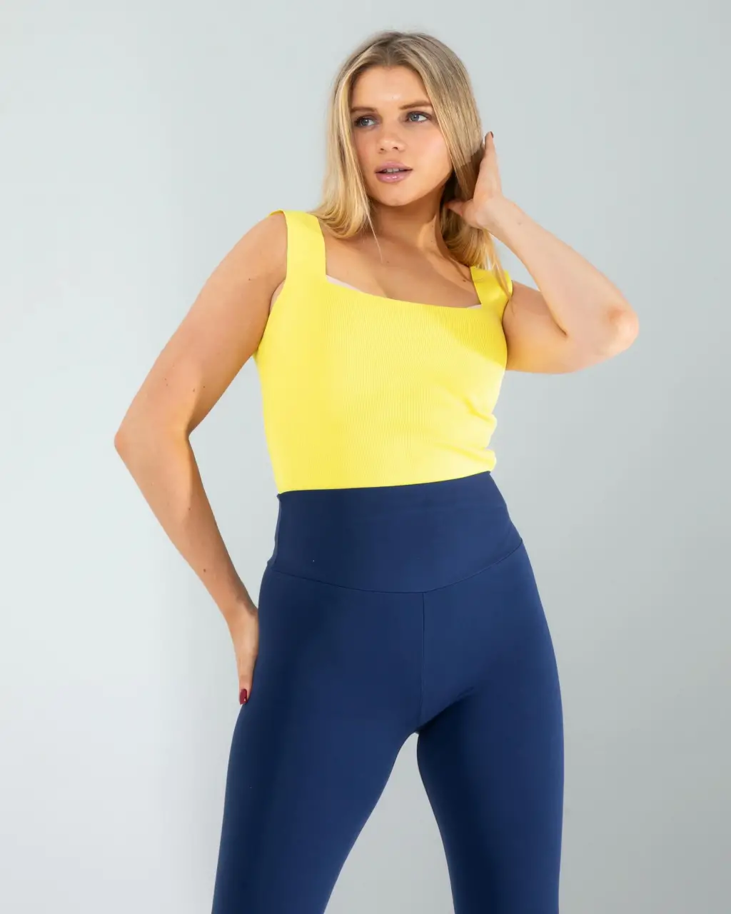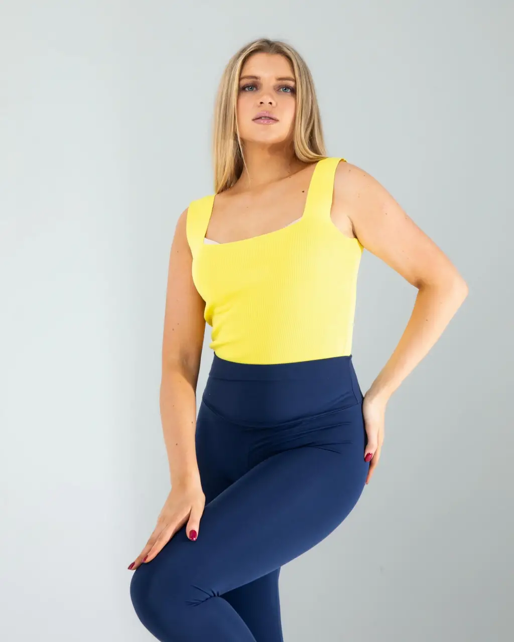 Gardırobunuzun en canlı ve şık parçalarından biri olacak. Yumuşak triko kumaşı ve modern kare yaka tasarımı ile hem konforlu hem de zarif bir görünüm sunar. Kalın askıları sayesinde gün boyu rahatlık sağlar. Bu bluz, günlük kullanım için idealdir ve çeşitli kombinlerle kolayca uyum sağlar.