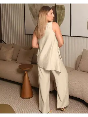 Çiçek Detaylı Düğmeli Triko - Ekru