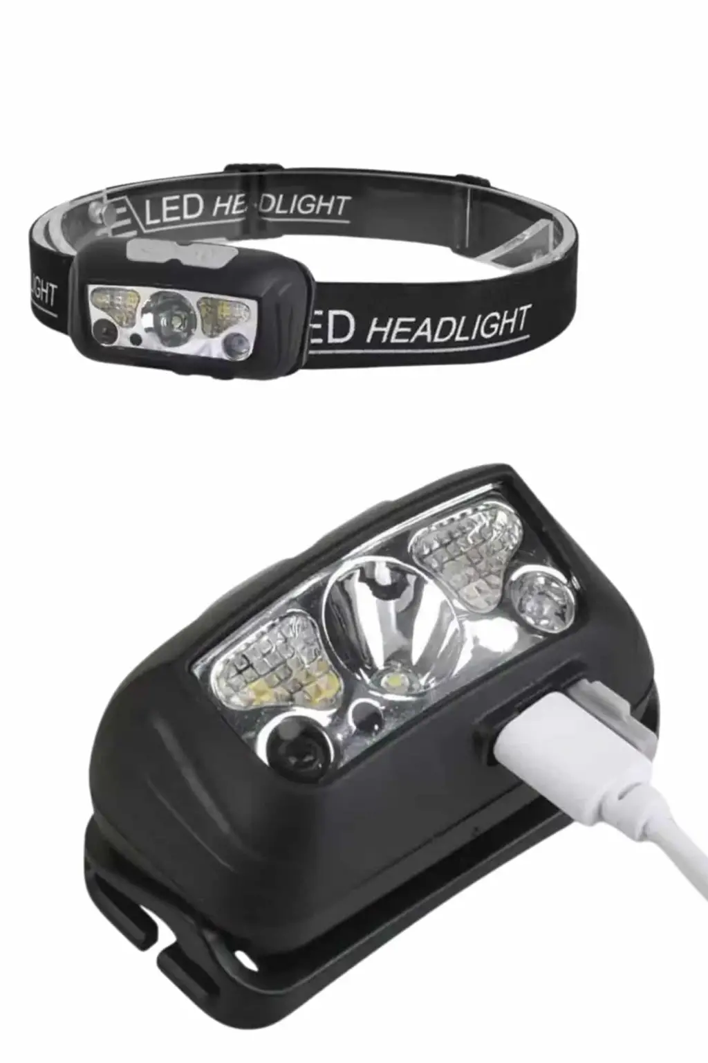 Beyaz Led Işık Sensörlü Kafa Lambası Lityum Batarya Led El Fenerli Şarjlı