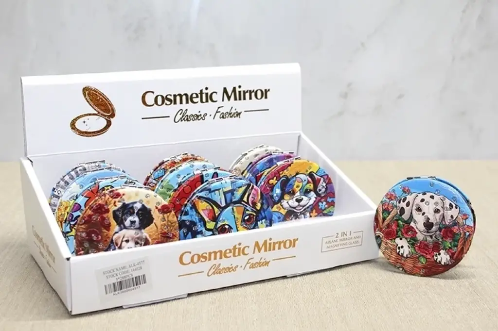 Sevimli Köpek Tasarımıyla Taş İşlemeli İnce El Aynası Yuvarlak Alk4577