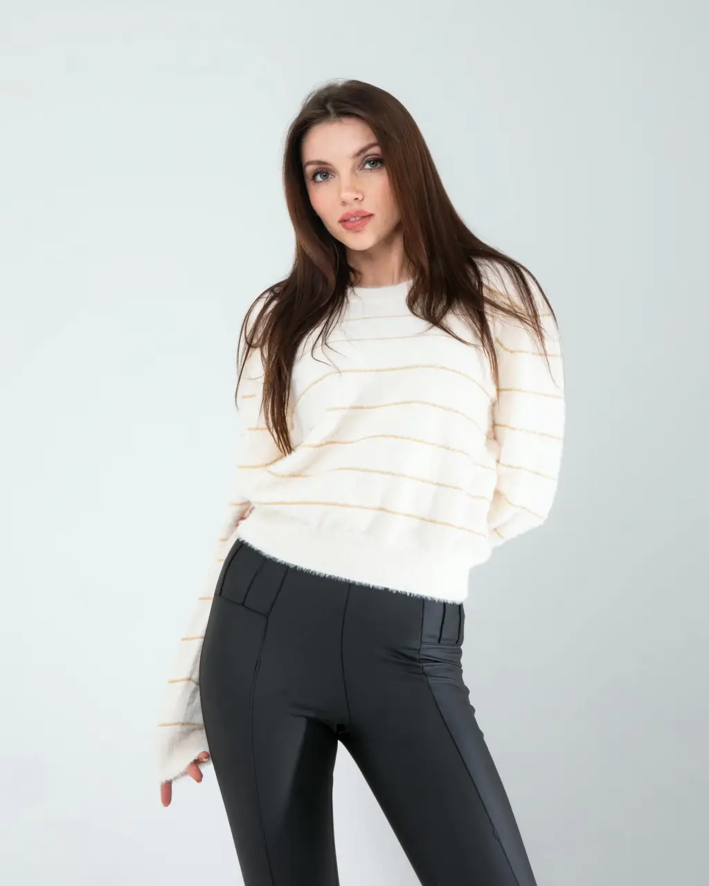 Zarif ve şık tasarımı ile hem günlük kullanıma hem de özel günlerde rahatlıkla tercih edebileceğiniz bir üründür. Yumuşak ve kaliteli kumaşı sayesinde gün boyu konfor sağlar. Sim detayları ile dikkat çeken bu triko, gardırobunuzun vazgeçilmez parçalarından biri olmaya adaydır. Günlük kombinlerinizde, iş yerinde veya özel davetlerde stilinizi tamamlayacak ideal bir seçenek. Beyaz rengi ile her kombine kolayca uyum sağlar ve sizi her zaman şık gösterir. Sim Şeritli Beyaz Renkli Triko ile stilinizi tamamlayın ve her an göz kamaştırıcı görünün!