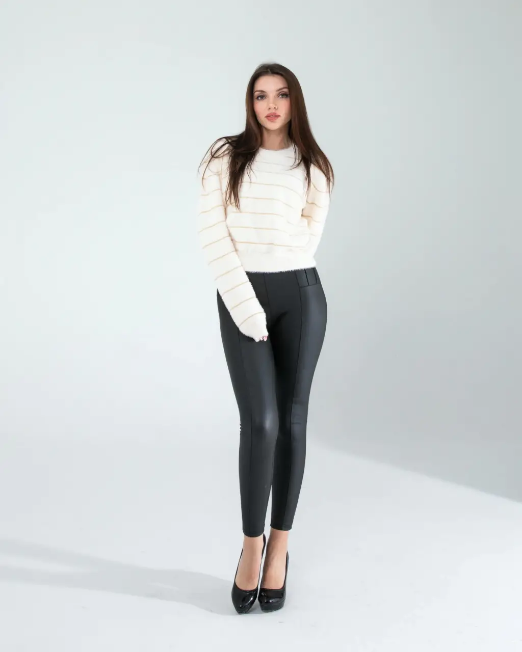 Şık Kombin: Trikonuzu siyah pantolon ve siyah topuklu ayakkabılarla kombinleyin. Altın rengi aksesuarlarla şıklığınızı arttırabilirsiniz.