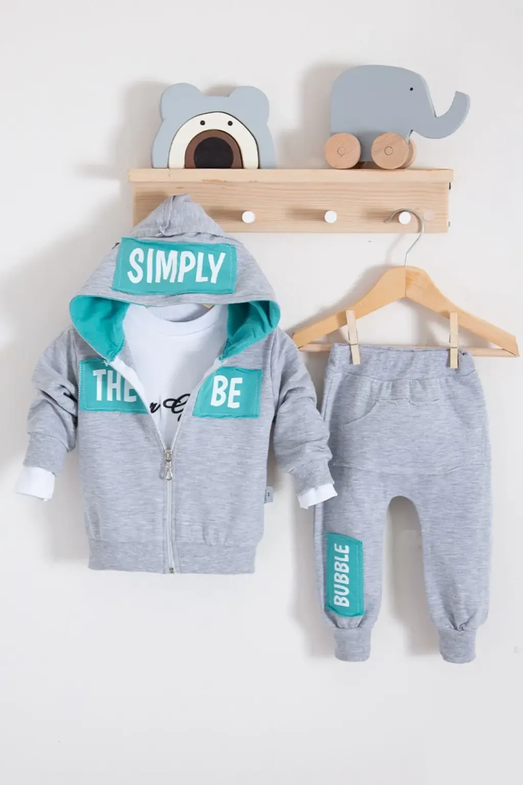 Simply Desenli Kapişonlu 3'lü Erkek Bebek Takımı