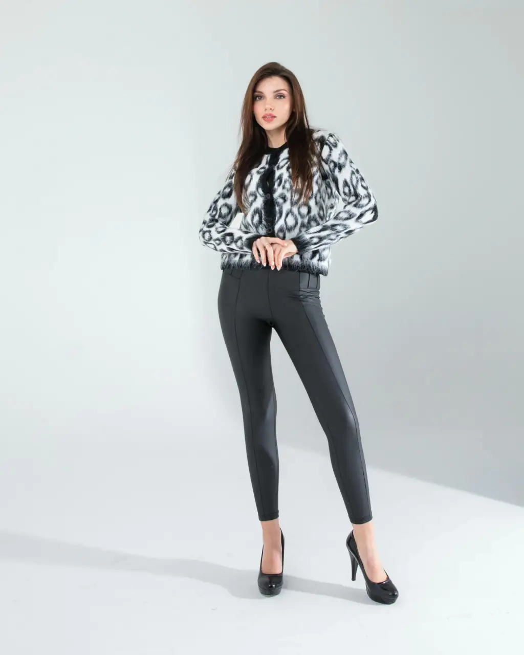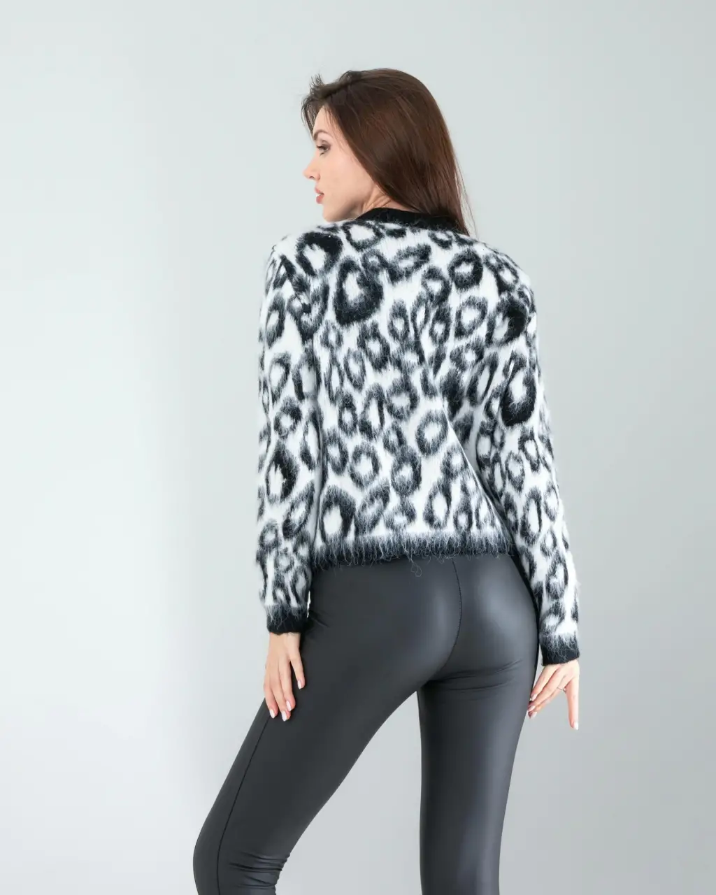Siyah Beyaz Leopar Desen Sakal Triko Hırka
