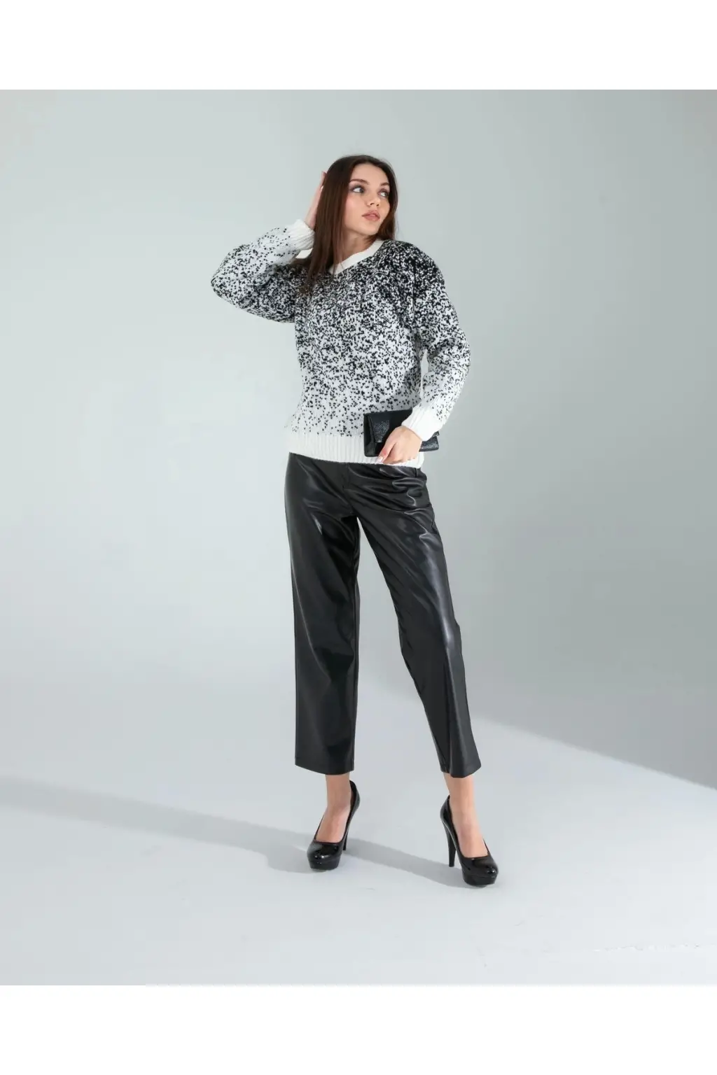Gece Şıklığı: Kar tanesi desenli kazağınızı siyah bir deri pantolon ve yüksek topuklu botlar ile kombinleyin. Üzerine siyah bir deri ceket ekleyerek asi ve çarpıcı bir tarz yaratabilirsiniz.