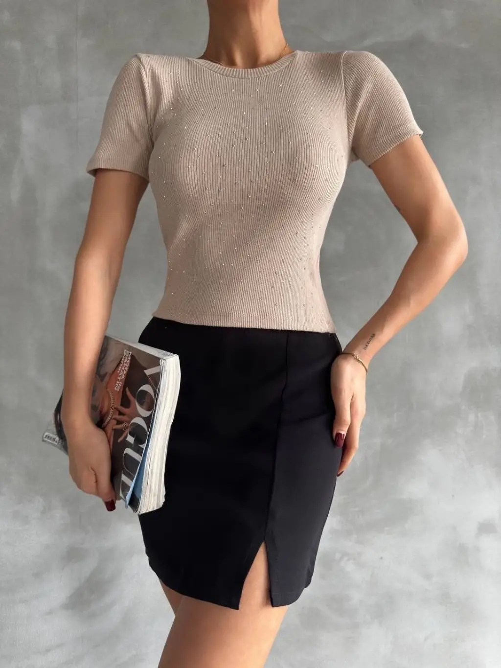 KAZAX markasının şık ve modern tasarıma sahip taş baskılı kaş korse bluzu ile şıklığınızı ön plana çıkarabilirsiniz. İnce detayları ve kaliteli kumaşıyla dikkat çeken bu bluz, hem günlük kullanıma hem de özel davetlere uygun bir seçenektir.