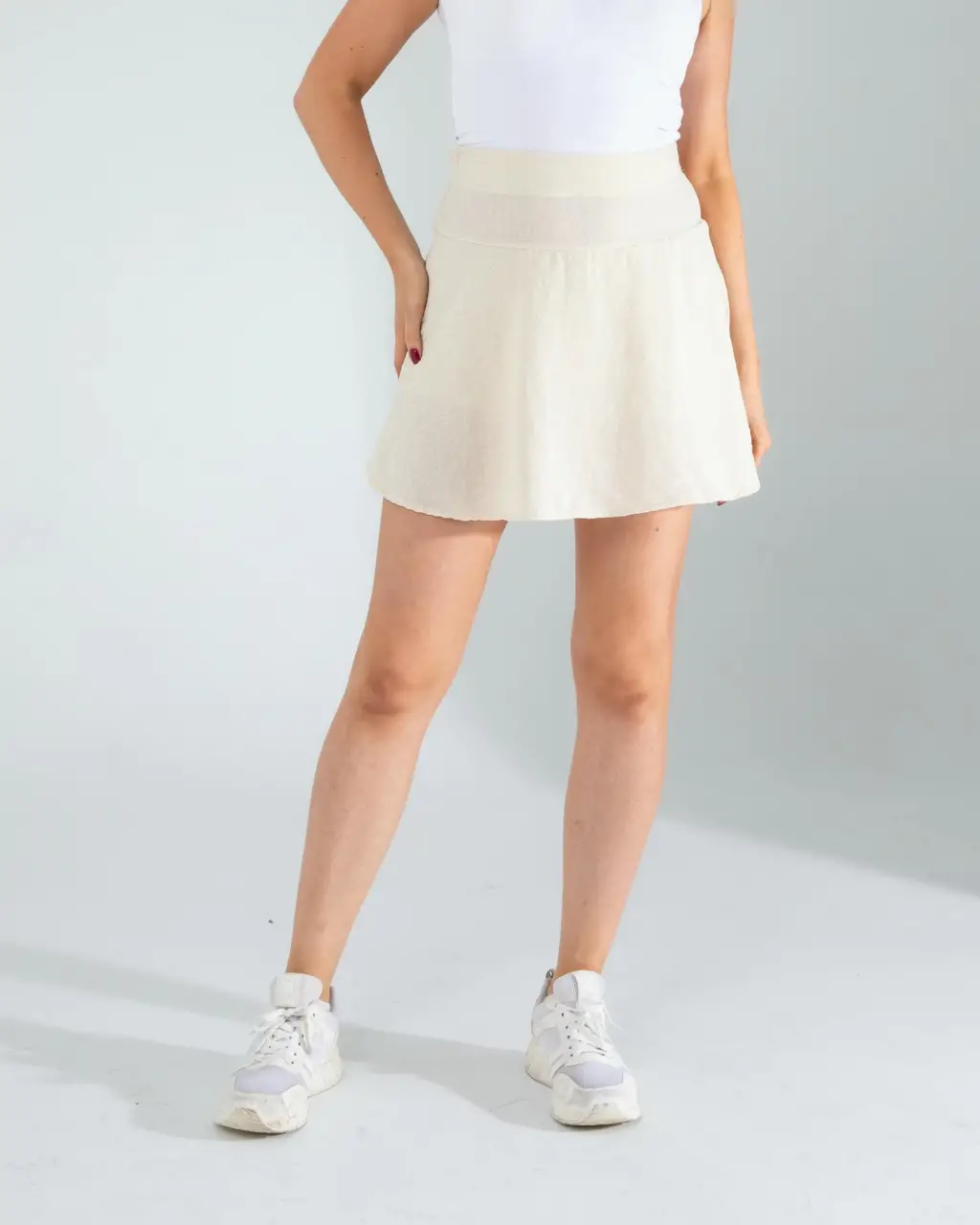 Günlük Şıklık: Bej keten şort eteğinizi beyaz bir basic tişört ve sandaletler ile kombinleyin. Hasır bir çanta ve birkaç zarif kolye ile görünümünüzü tamamlayın