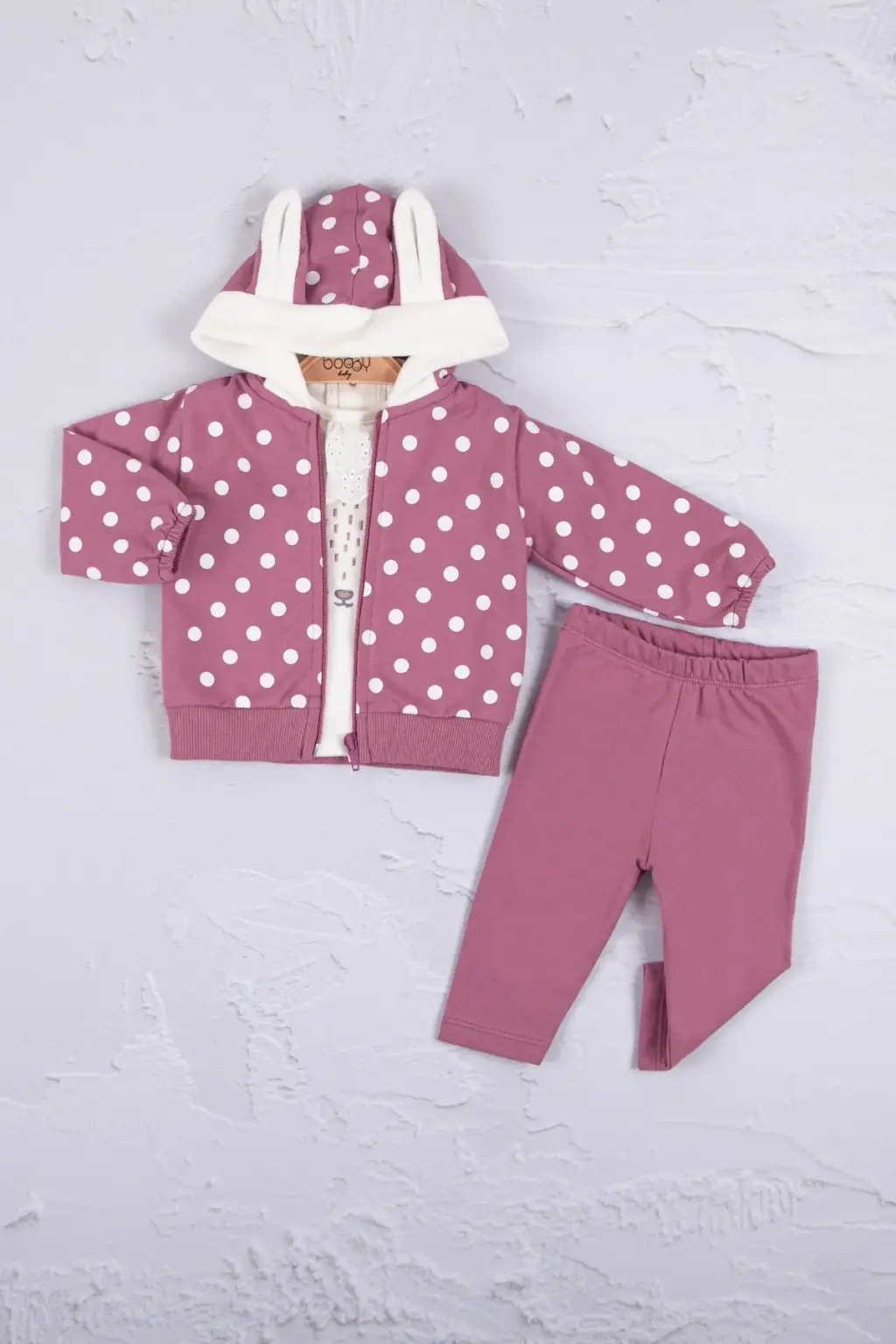 Tavşan Kulaklı Puanlı 3'lü Kız Bebek Takım