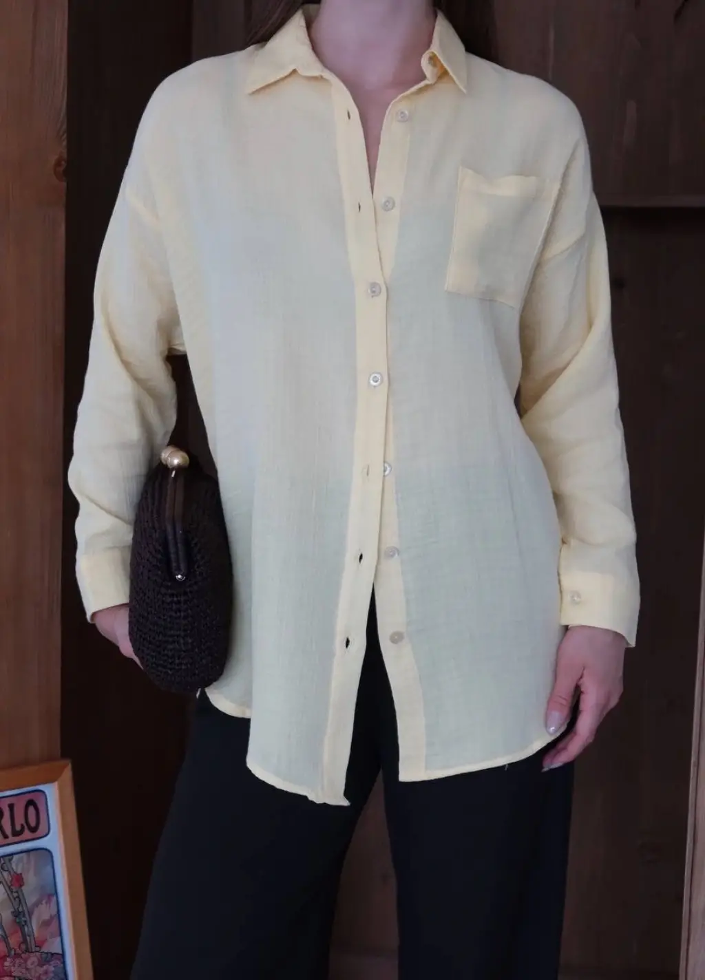 Tek cepli müslin gömlek sarı