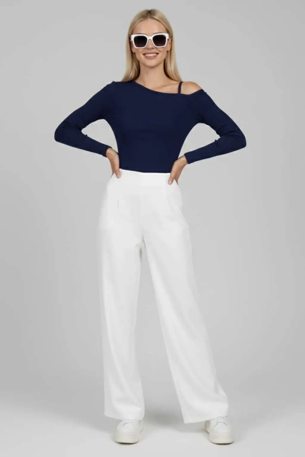Bu sezonun trend parçalarından Tek Omuz İpli Bluz Lacivert T4328, şıklığı ve rahatlığı bir arada sunuyor.