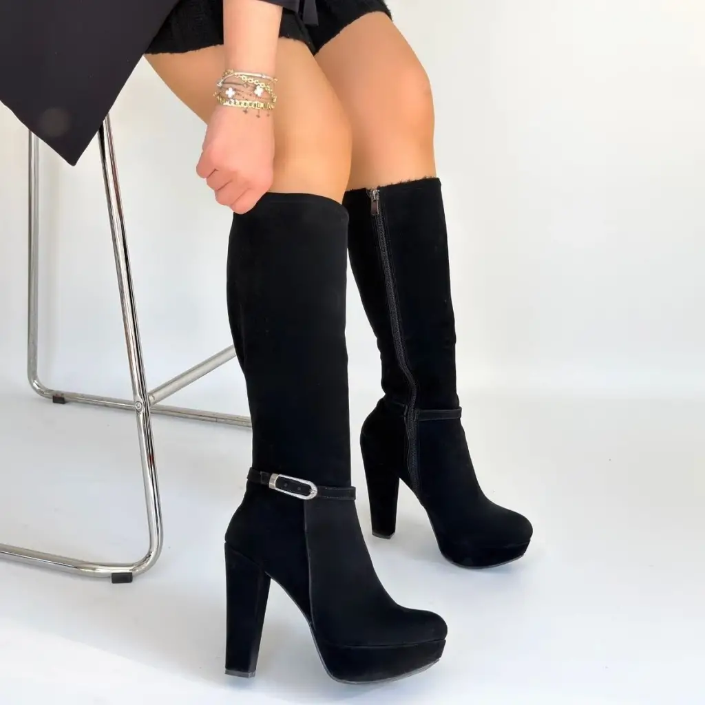 Detay: Topuklu Yandan Fermuarlı Diz Altı Çizme