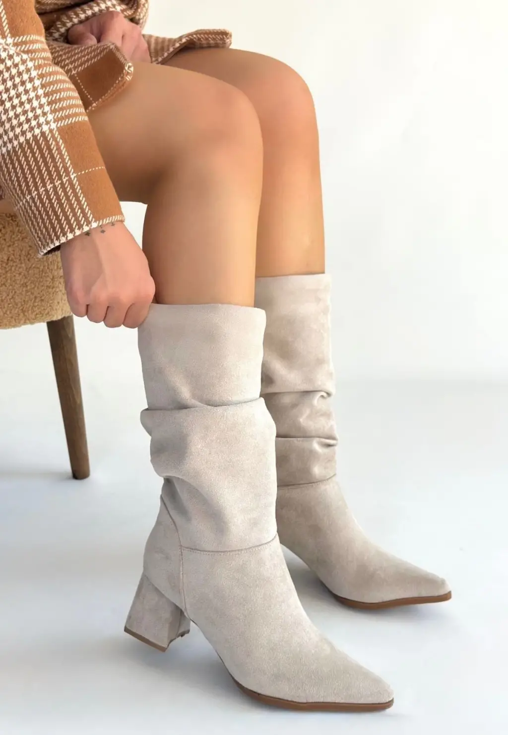 Detay: Topuklu Diz Altı Körüklü Çizme
