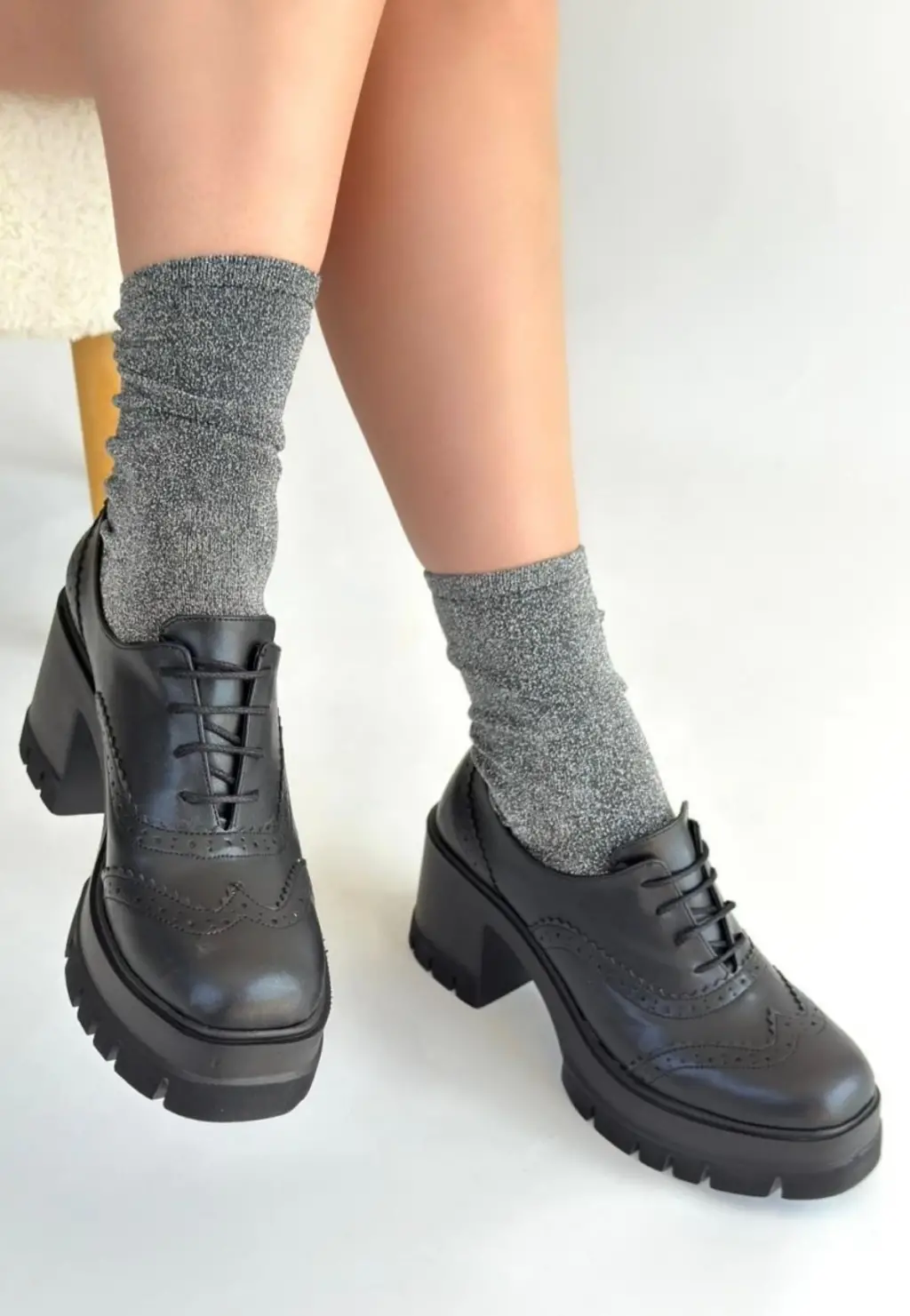 Tiwer Siyah Cilt Dolgu Topuk Ayakkabı