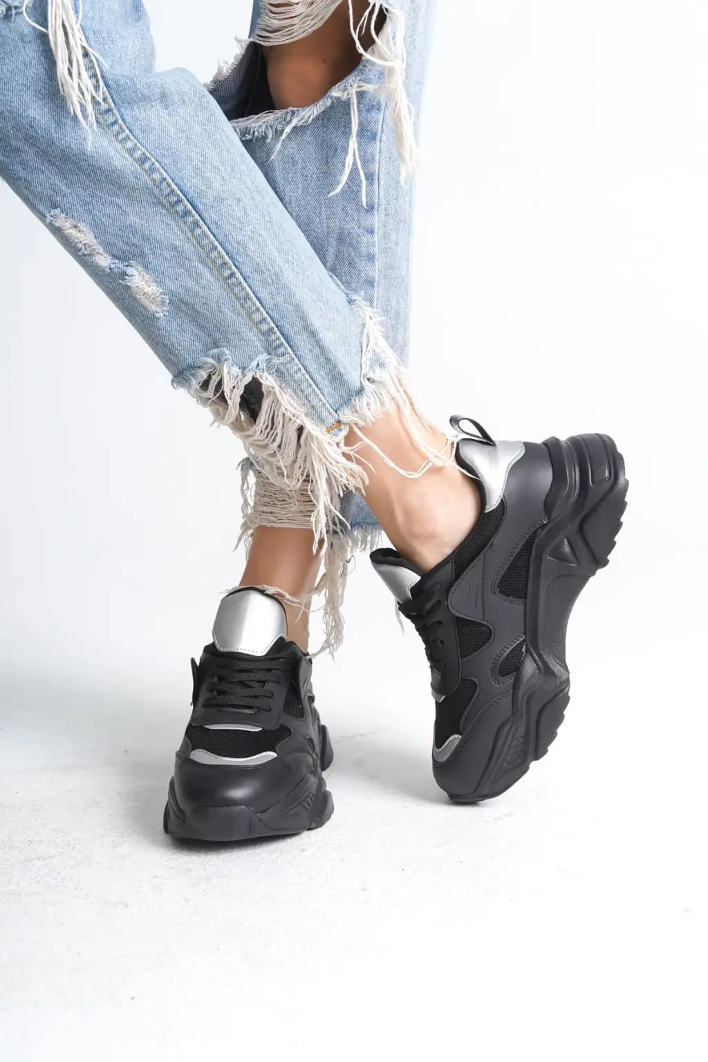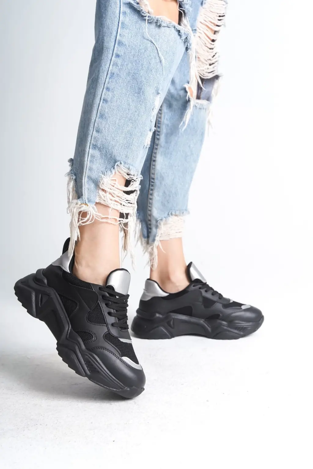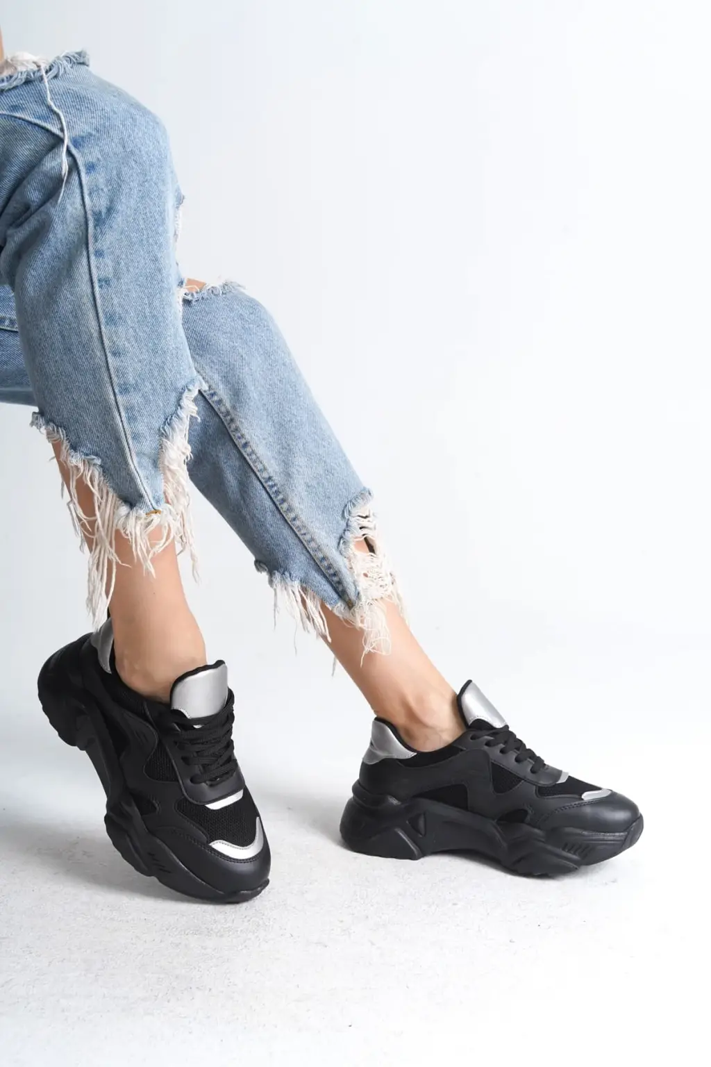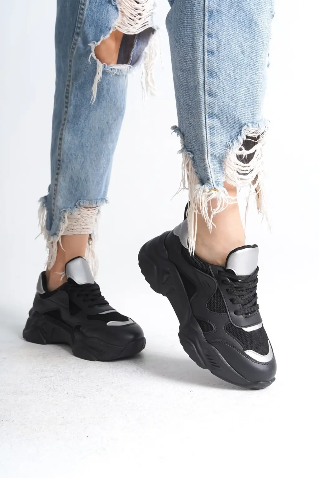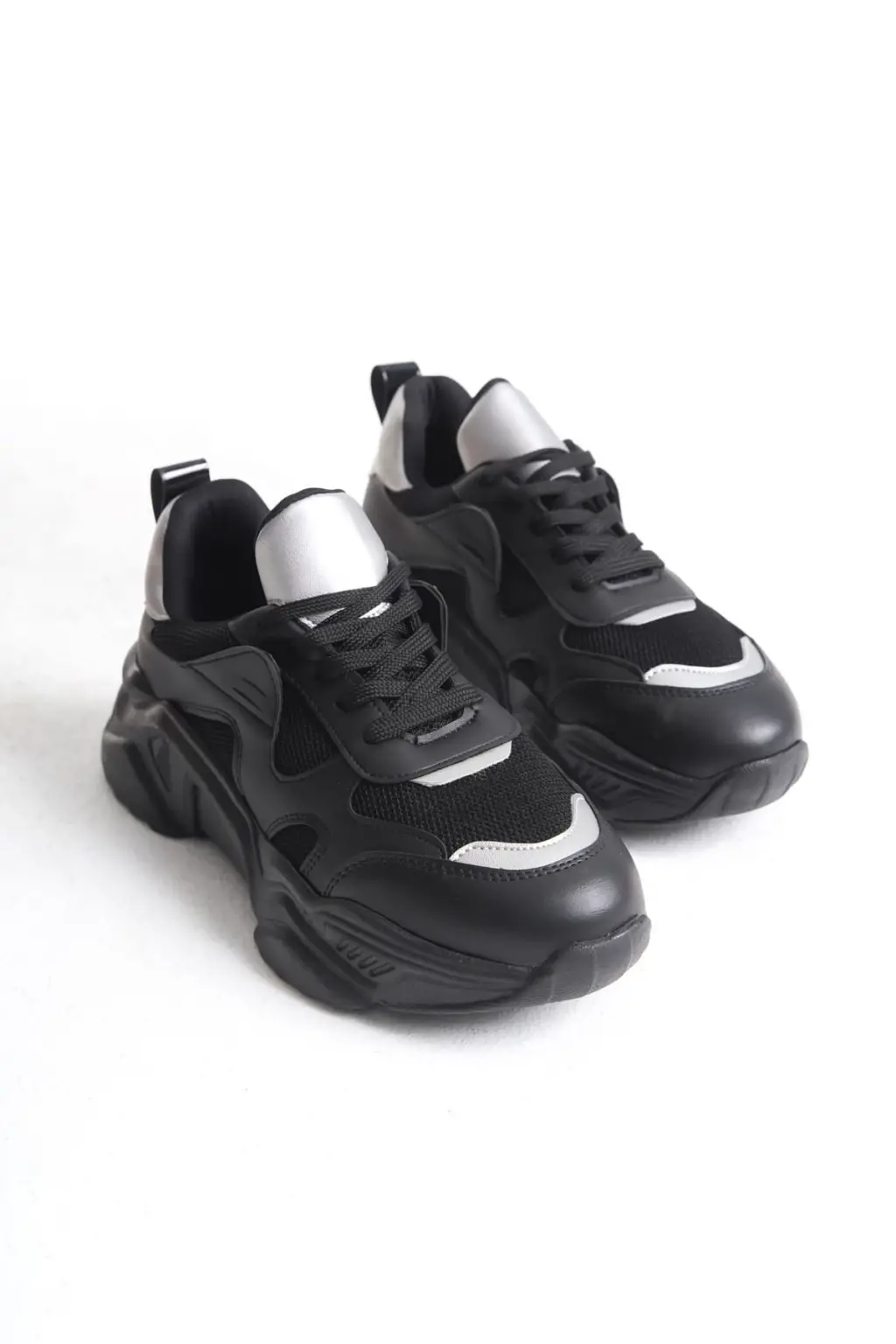 Modern Bağcıklı Spor Ayakkabı Tabaan Triko Detaylı