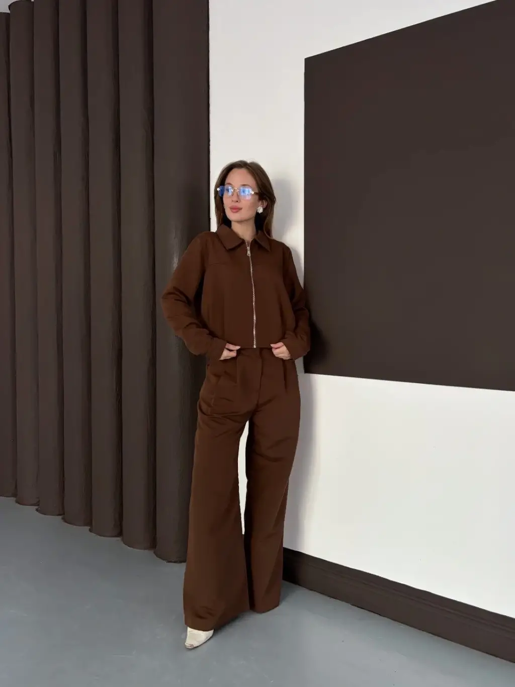 Şık ve şıklığından ödün vermeyen kadınlar için tasarlanmış Kahve Ons Trenç Takım, şıklık ve rahatlığı bir arada sunuyor. İster günlük şıklığınızda ister özel davetlerde tercih edebileceğiniz bu takım ile her ortamda farkınızı ortaya koyabilirsiniz.