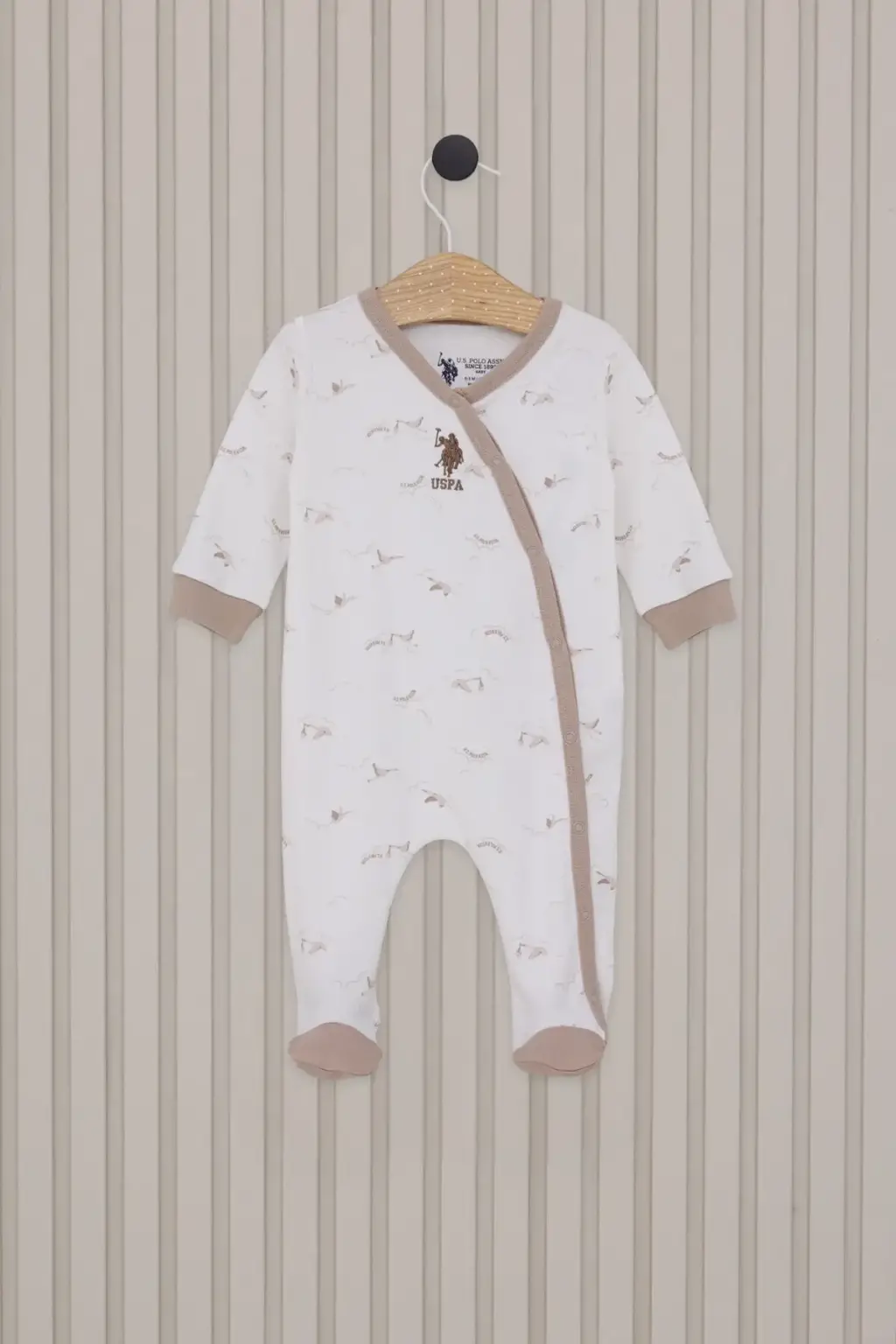 Omarı Yumuşak Pamuklu Bebek Tulumu Krem Renkli