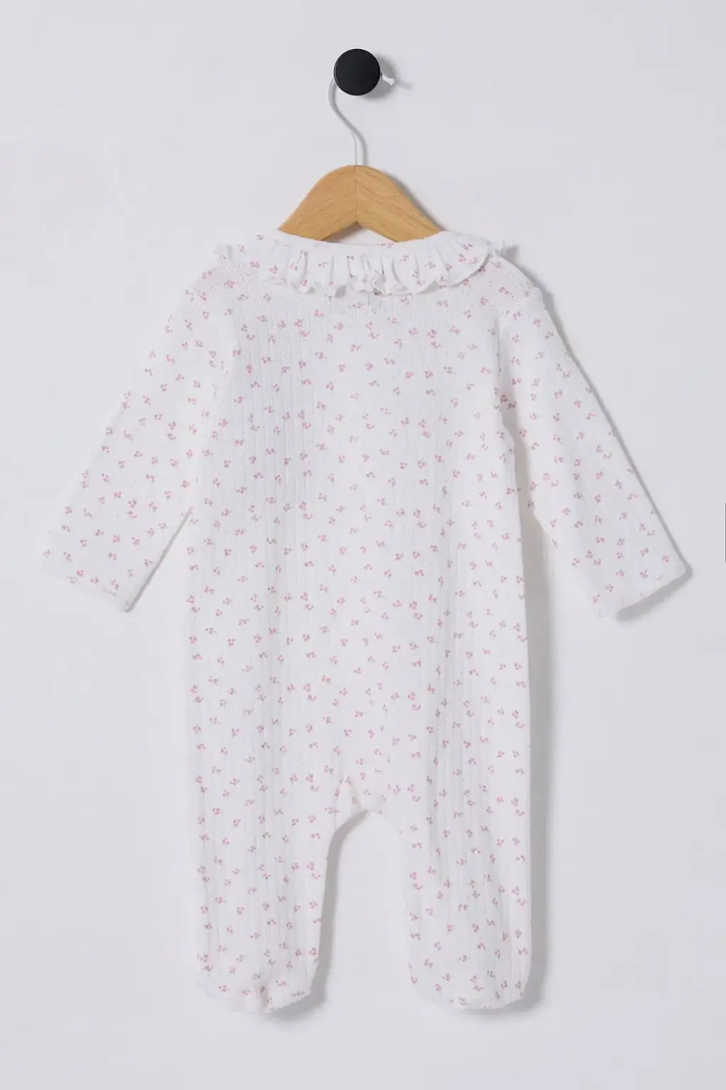 Omarı Sevimli Beyaz-Pembe Bebek Tulumu