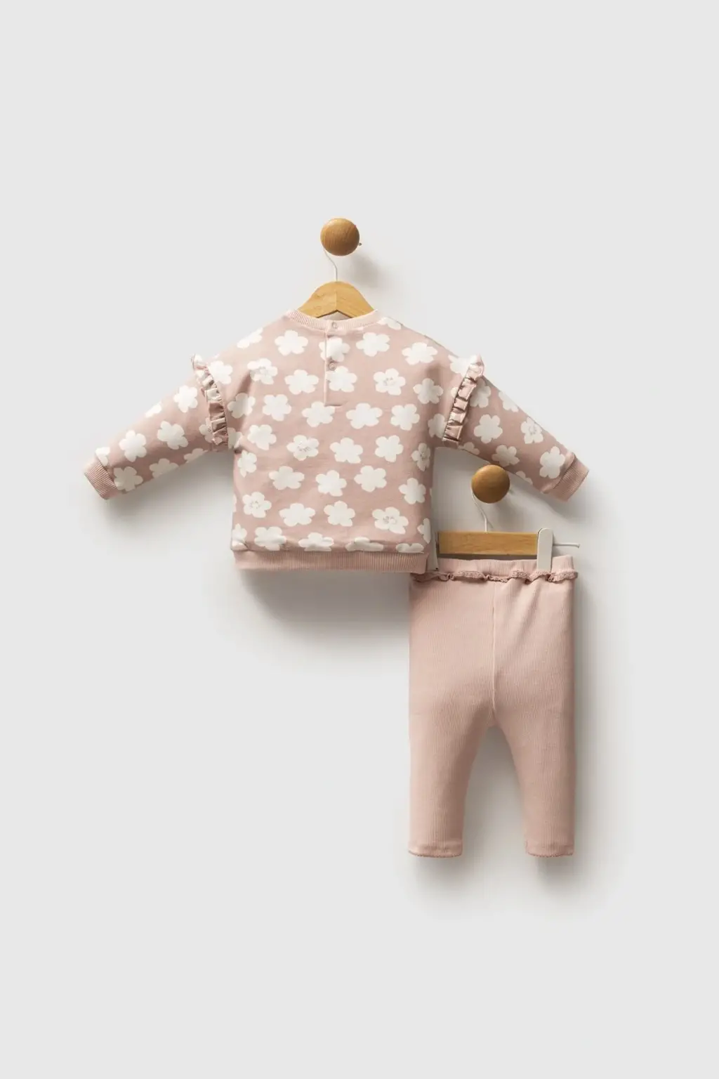 4-10 yaş kız çocuk pembe Armalı yeşilbiye detaylı alt üst ikili takım