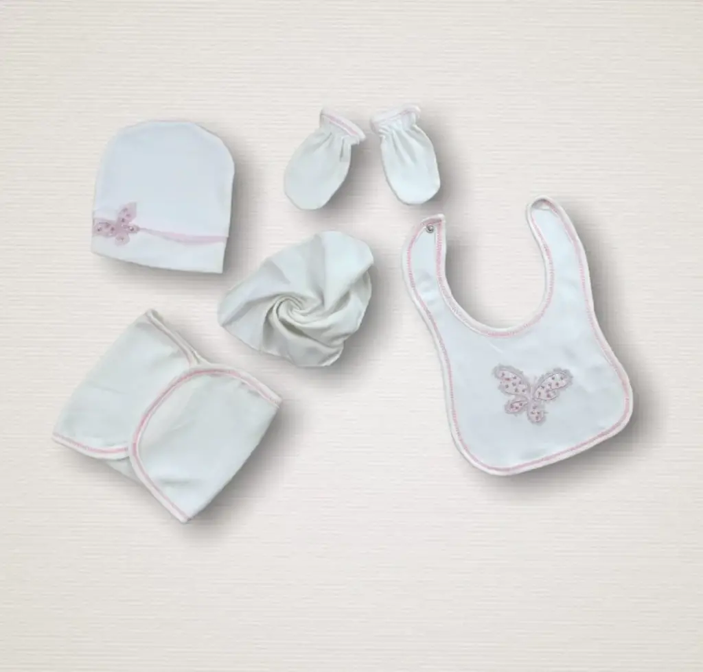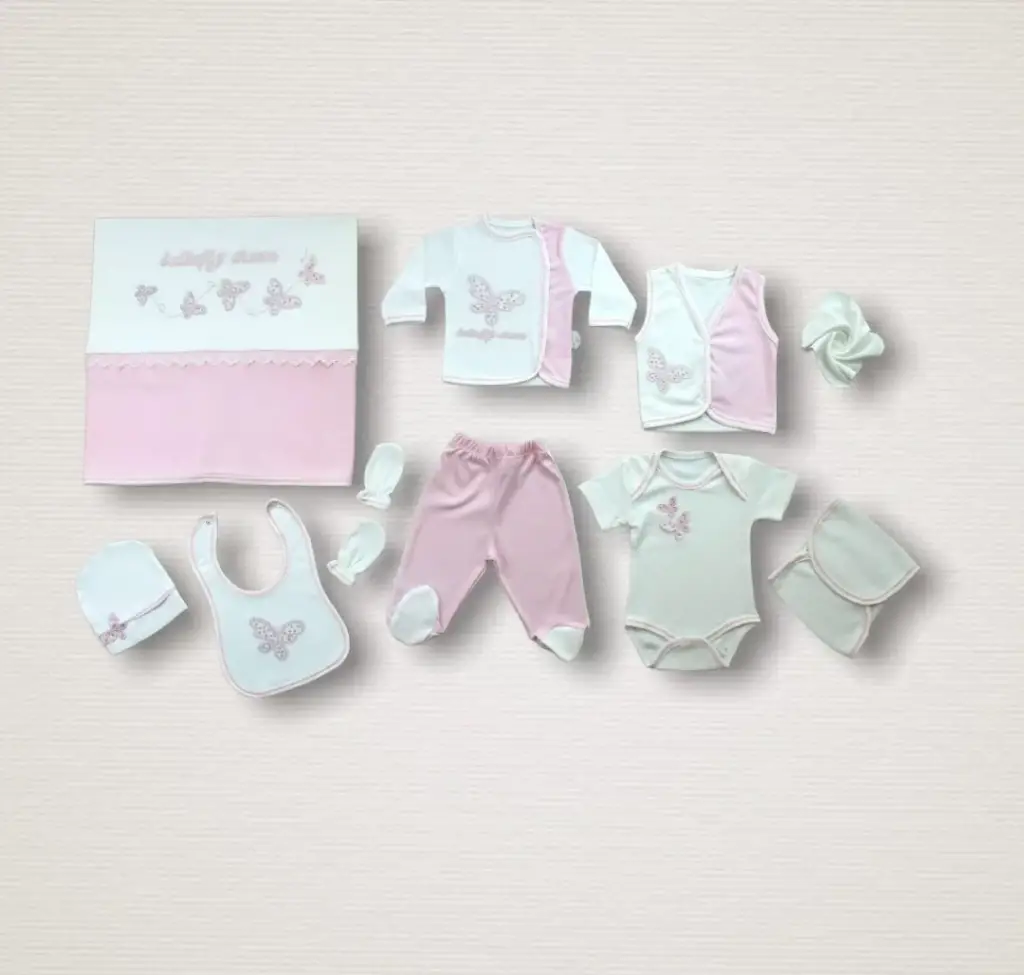 Omarı Nakışlı Uçan Kelebekler 10lu Hastane Çıkışı Zıbın Takımı - Pembe