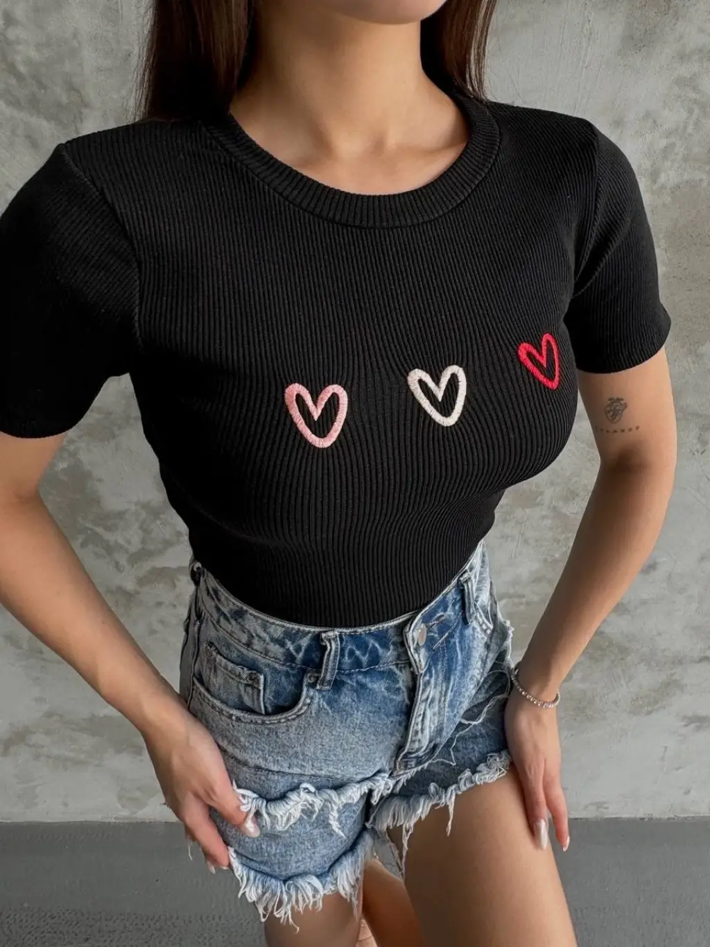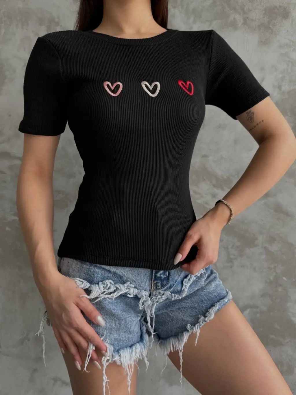 • Üç adet kalp nakış detayı