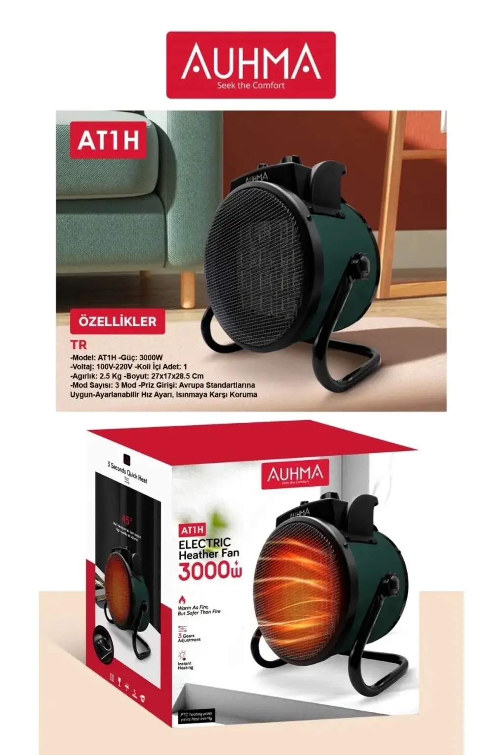 Ultra Güçlü 3000 Watt Taşınabilir Elektrikli Portatif Isıtıcı Soba Sıcak Hava Üfleyen Fan Radyatör