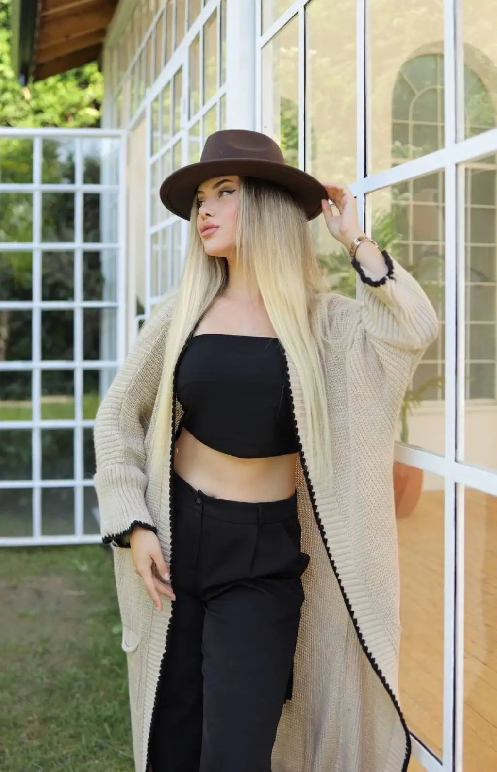 Uzun hırka çoban dikiş bej ile tarzınızı ve konforunuzu ön plana çıkarabilirsiniz.